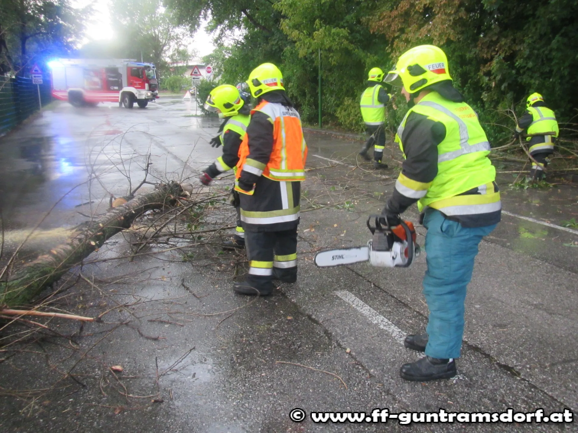 Während ein starkes Gewitter über Guntramsdorf zog, wurde die Feuerwehr zu einem Sturmeinsatz in die Ozeanstraße alarmiert. Kurz nach der Alarmierung rückten zwei Fahrzeuge zur Einsatzstelle aus. Ein Teil der Mannschaft blieb für allfällige weitere Einsätze als Einsatzbereitschaft im Feuerwehrhaus.