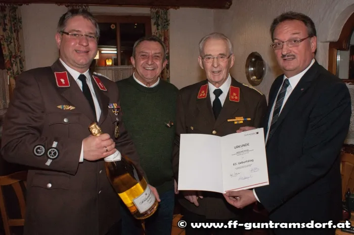 Am Abend des 30. Jänner lud Ehrenhauptbrandinspektor Ignaz Kossina anlässlich seines 85. Geburtstages das Kommando und die Reservisten der FF Guntramsdorf sowie Bürgermeister Karl Schuster, Vizebürgermeister Robert Weber und Altbürgermeister Karl Sonnweber zum Heurigen Gamperl.