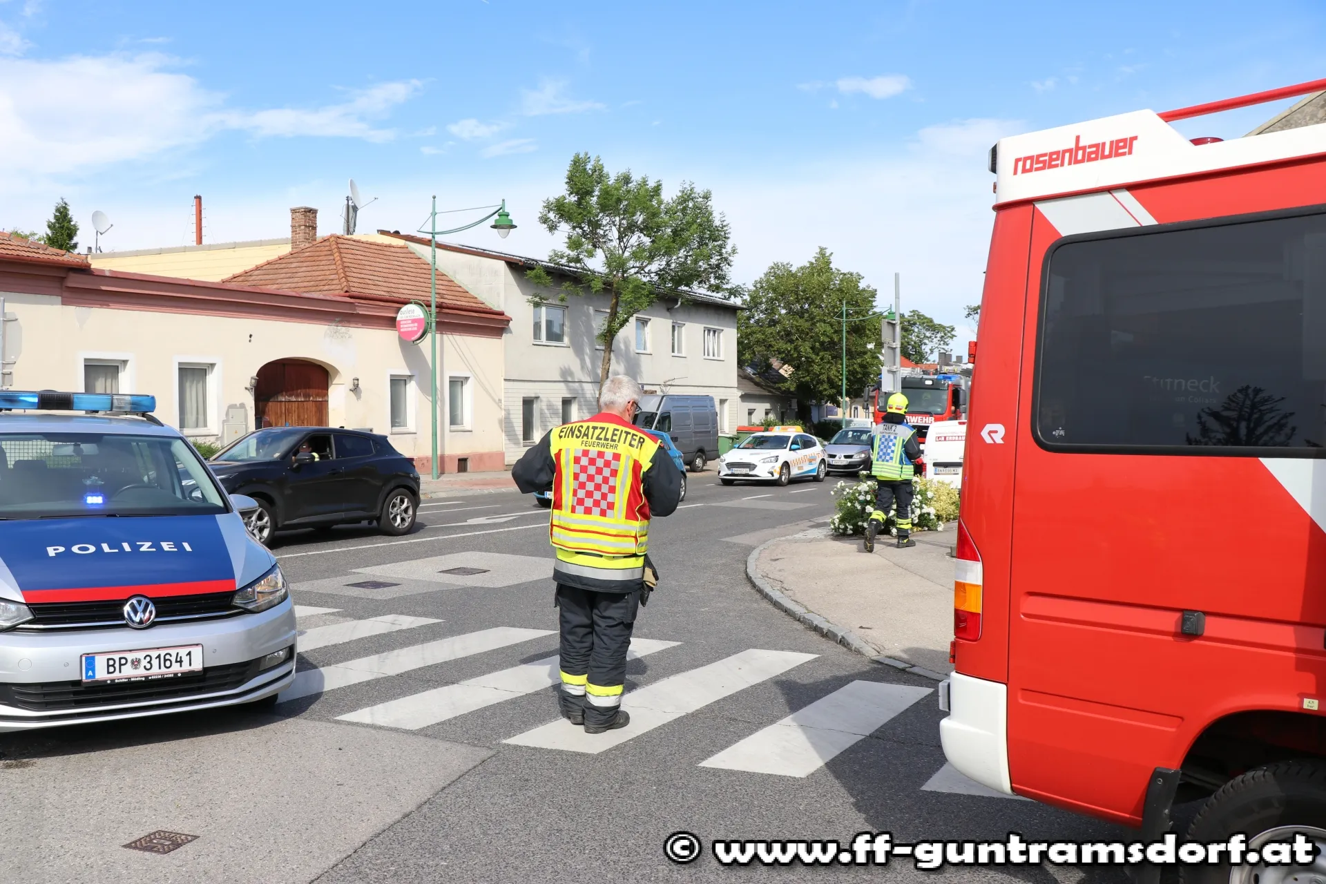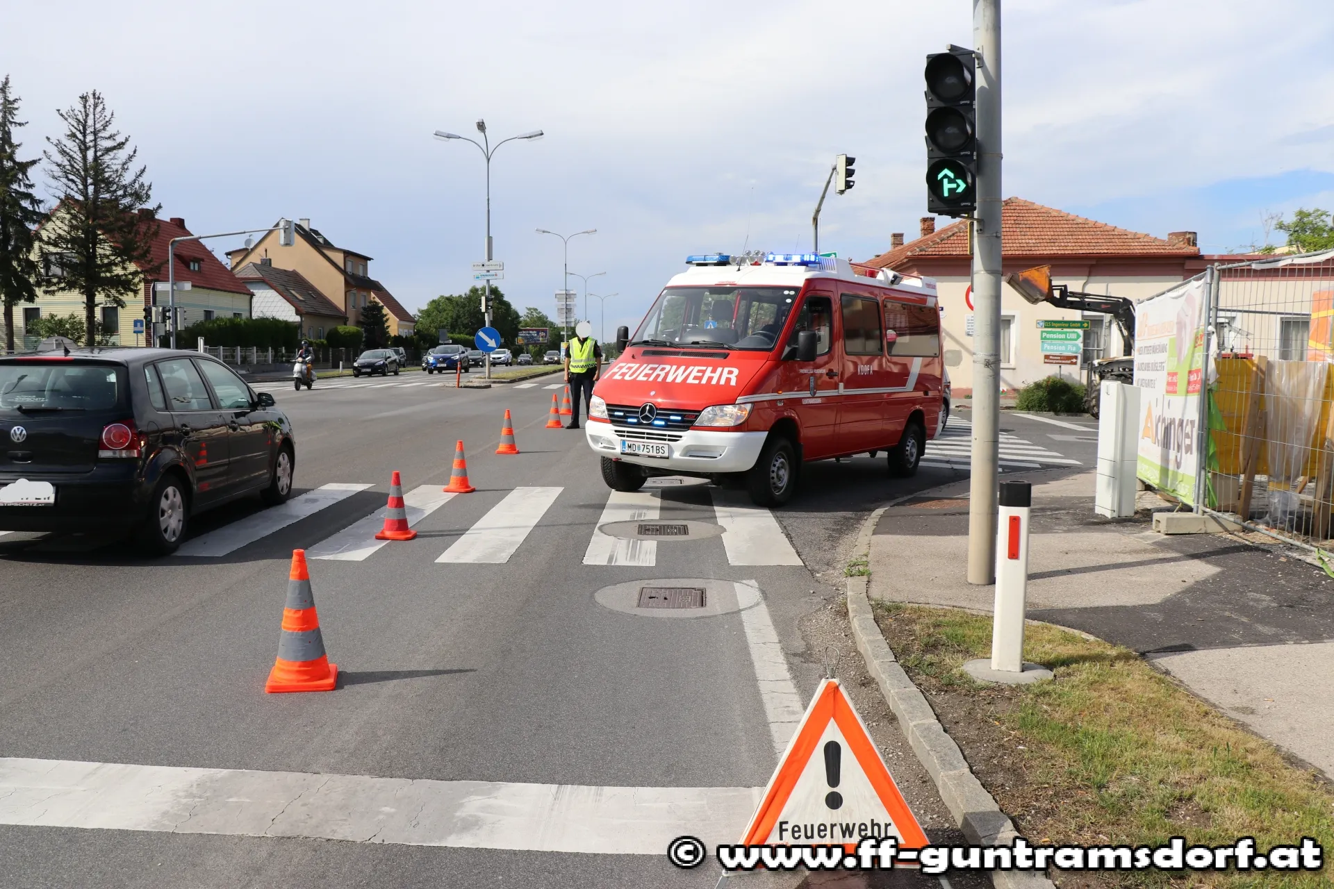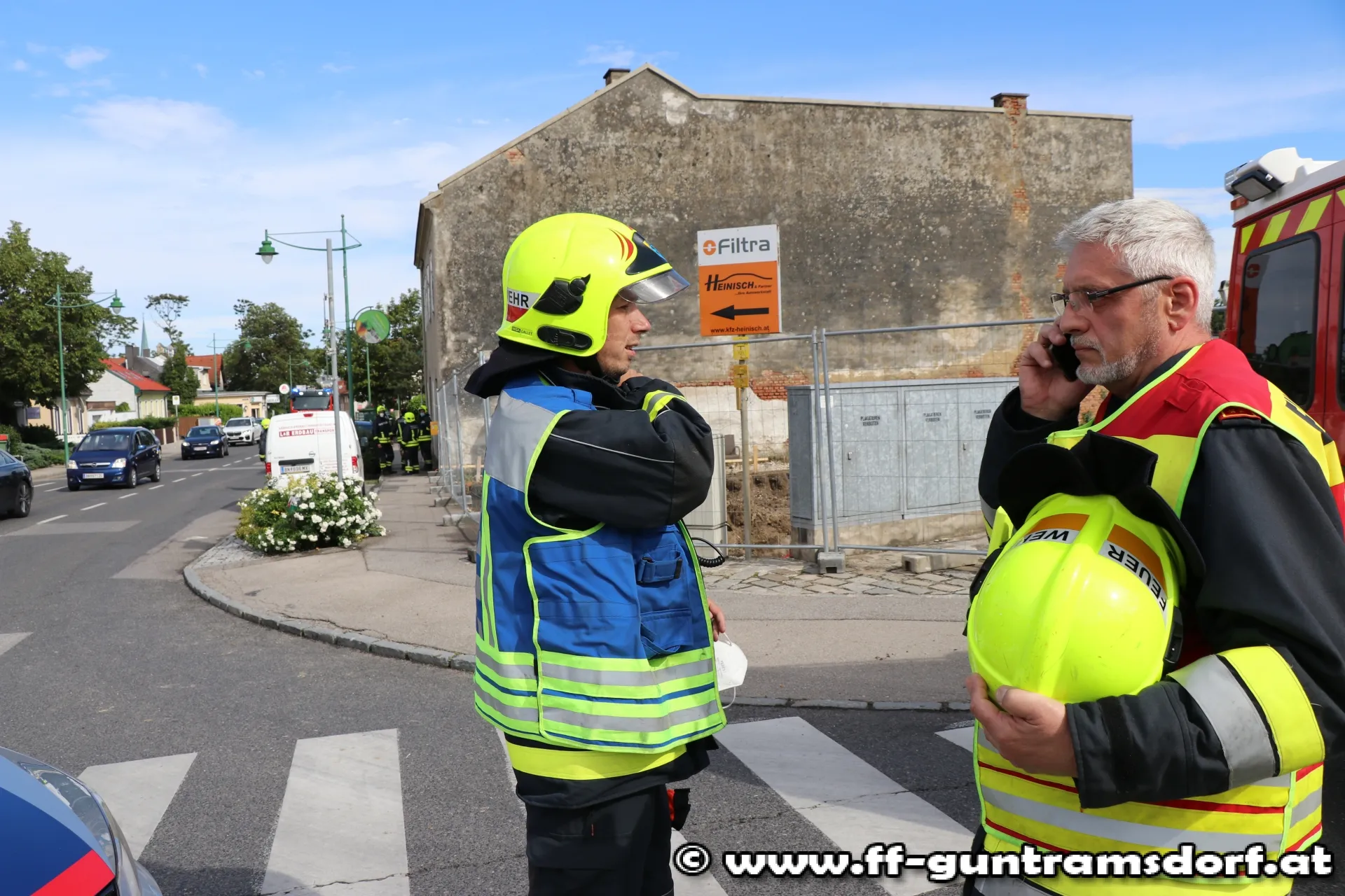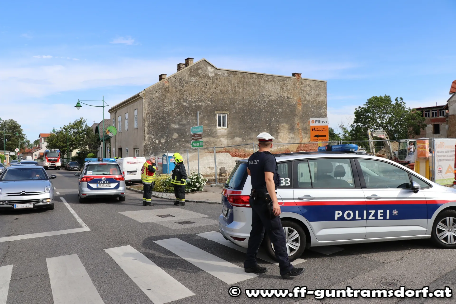 Bei Bauarbeiten auf einem Grundstück Ecke B17 / Hauptstraße, hatte ein Bagger die Gasleitung beschädigt, sodass es zu einem Gasaustritt kam. Mit den Messgeräten der Feuerwehr war in unmittelbarer Nähe der Austrittsstelle tatsächlich ein explosives Gemisch feststellbar. Daraufhin wurde die Hauptstraße sowie eine Fahrspur der B17 Richtung Wien von der Polizei gesperrt. Von der Feuerwehr wurden die Wiener Netze Gas und Strom verständigt. Bis zum Eintreffen des Gas-Notdienstes wurde gemeinsam mit einem ebenfalls am Einsatzort eingetroffenen Team der EVN die lecke Gasleitung provisorisch abgedichtet.