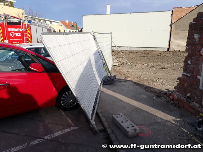Sturmschaden / Bauzaun auf PKW gestürzt