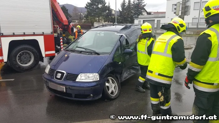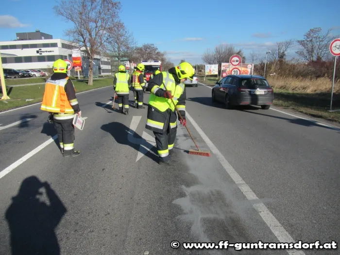 Absicherungsarbeiten bei einem Verkehrunfall in Wiener Neudorf