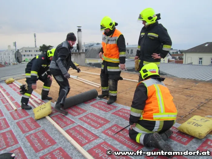 Sturmschaden, Blechdach abgedeckt Eggendorferstraße