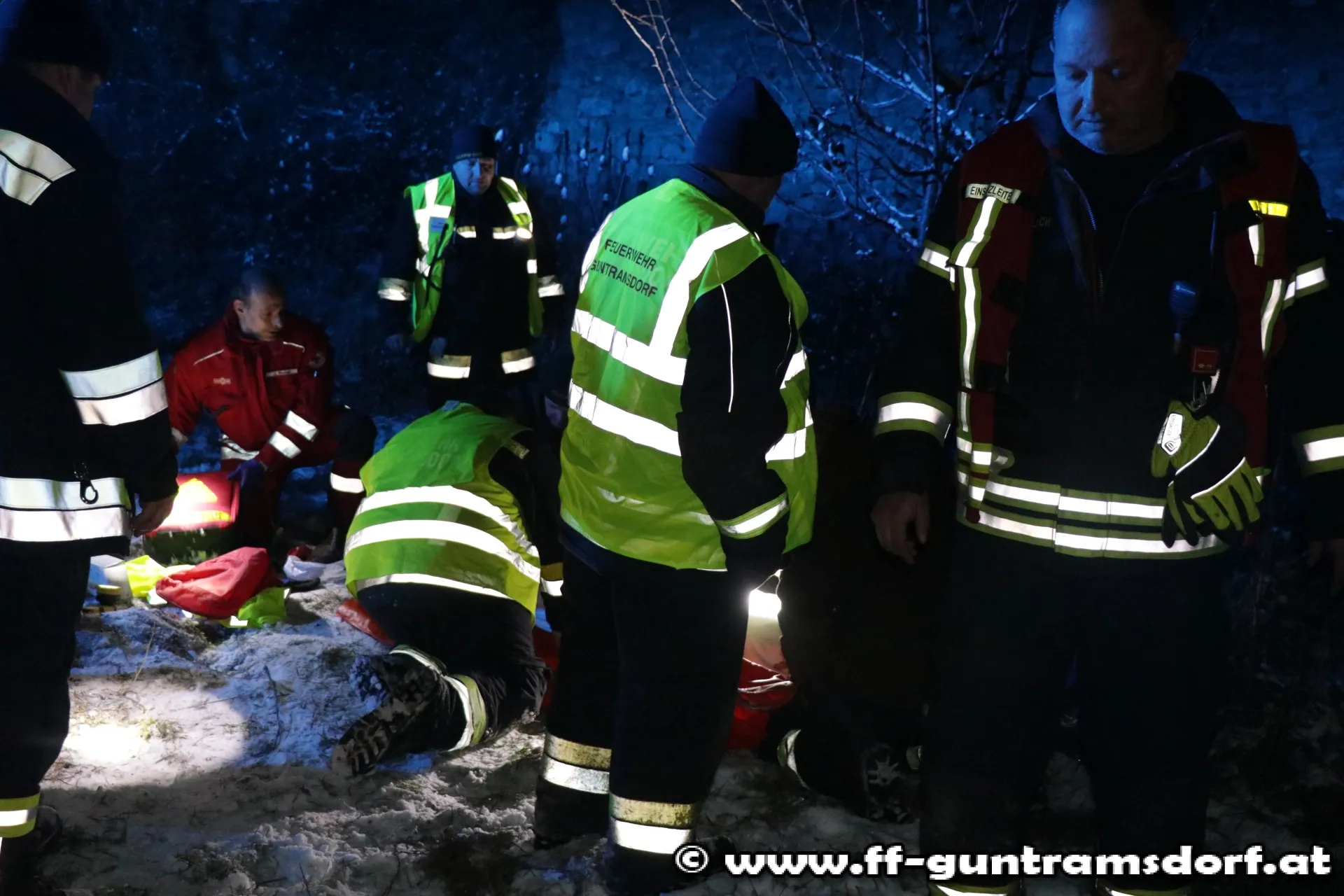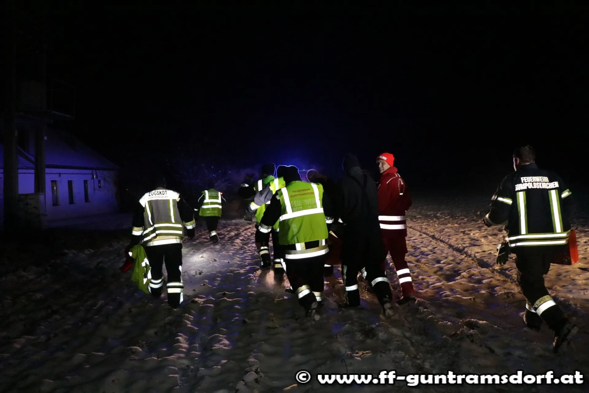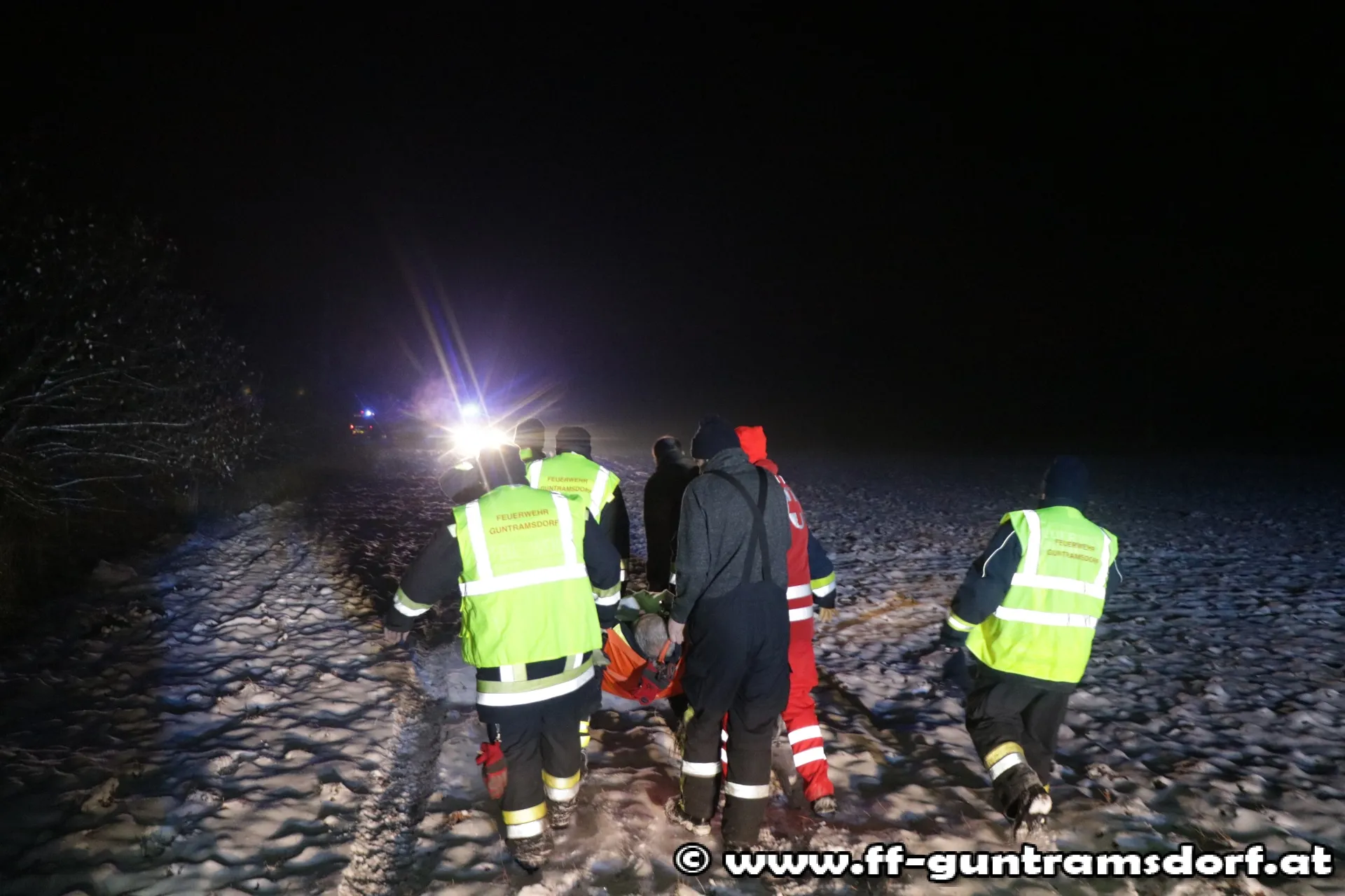 Nach knapp einer Stunde konnte durch die Mannschaft von BUS Guntramsdorf der Vermisste, schwach und unterkühlt im Bereich Thallern gefunden werden. Umgehend wurden erste Maßnahmen getroffen um den Zustand der Person zu stabilisieren. In Absprache mit dem eintreffenden Rettungsdienst wurde der Vermisste zu einem nahegelegenen Parkplatz getragen, auf diesem das Rettungsfahrzeug stand. Diese verbrachte ihm zur weiteren Behandlung ins Thermenklinikum Mödling.