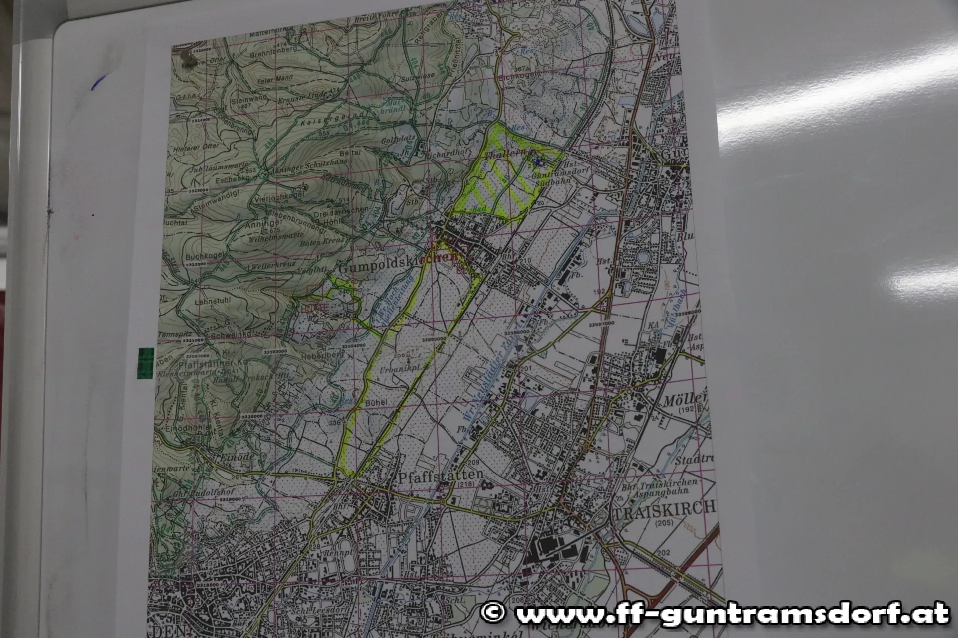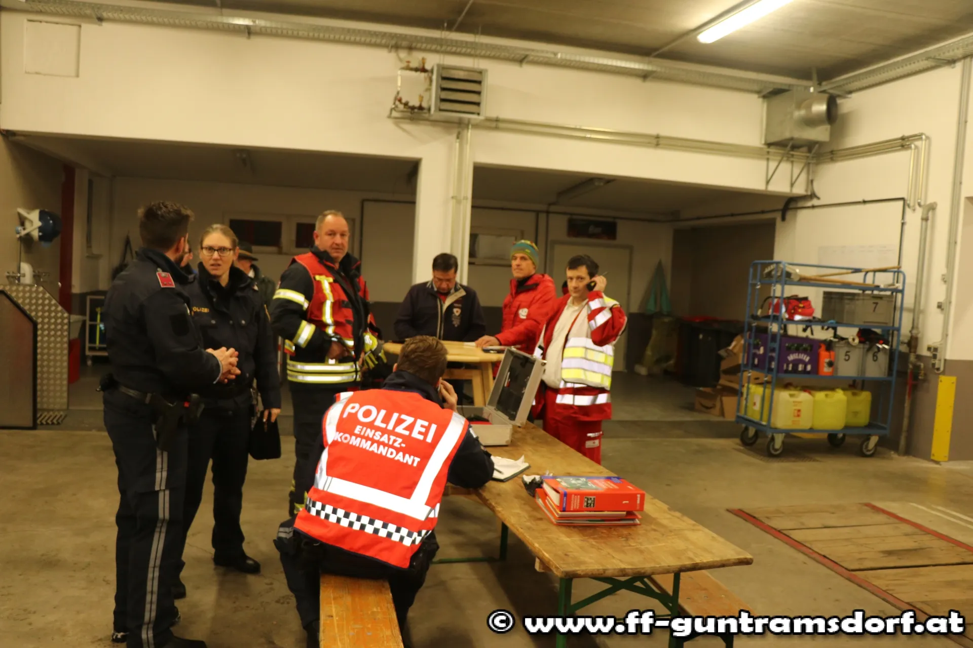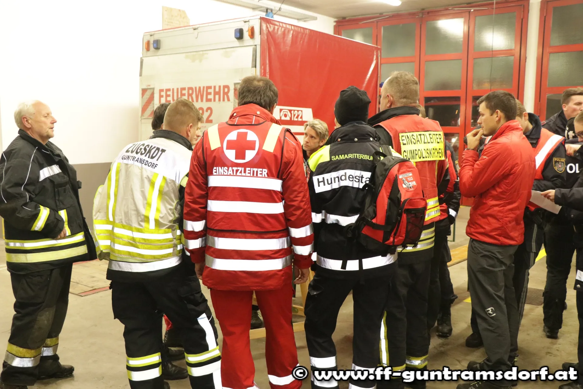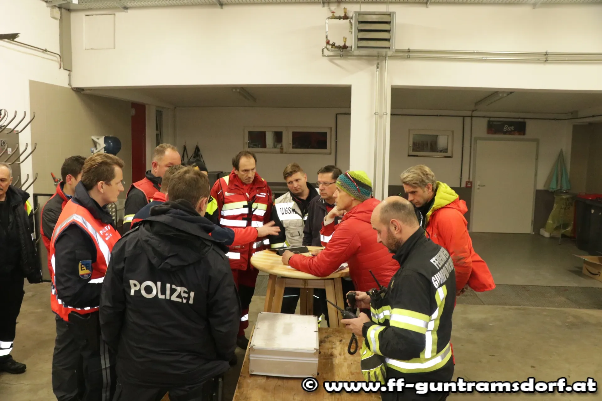 Um mehr Mannschaft zur Verfügung zu haben, ließ der Einsatzleiter die Feuerwehr Guntramsdorf ebenfalls zum Einsatz alarmieren. Während diese das Feuerwehrhaus Gumpoldskirchen zur Lagebesprechung anfuhr, teilten sich die ersten Kräfte im weitläufigen Gebiet auf und begannen mit der Suche.