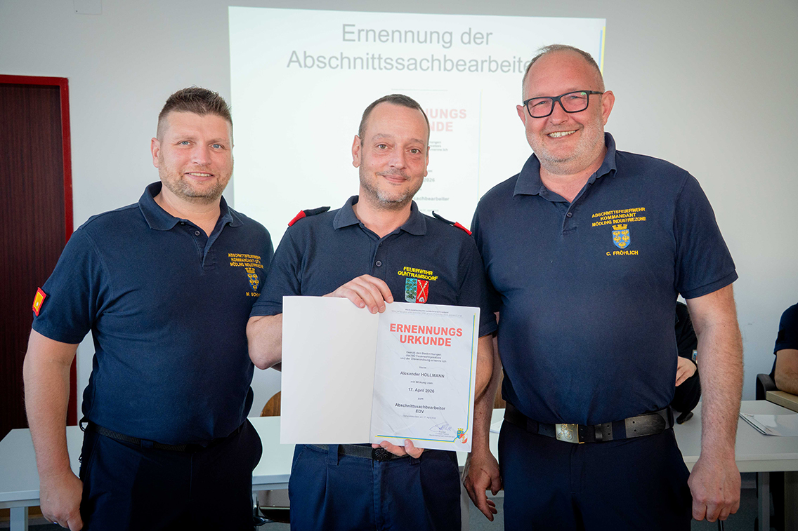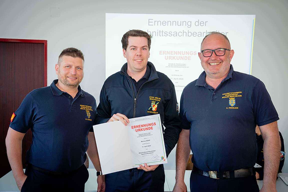 Zum ASB (Abschnittssachbearbeiter) wurden Alexander Hollmann für EDV und Tizian Vajay für den Bereich Schadstoff ernannt. Marcus Manz wurde als ASB für das Funkwesen wiederbestellt.