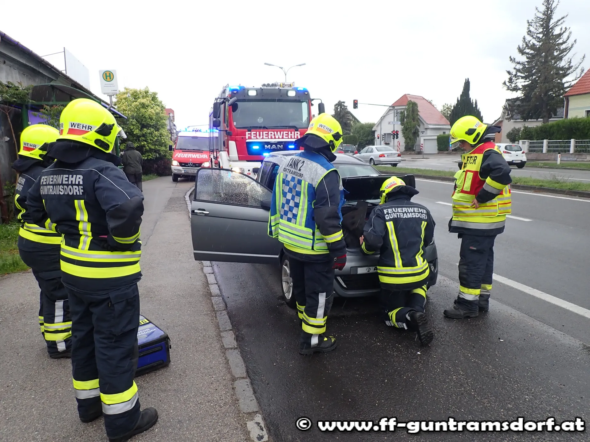 – FF Guntramsdorf mit Kommandofahrzeug, Tank 2, Tank 1 und 19 Mitgliedern