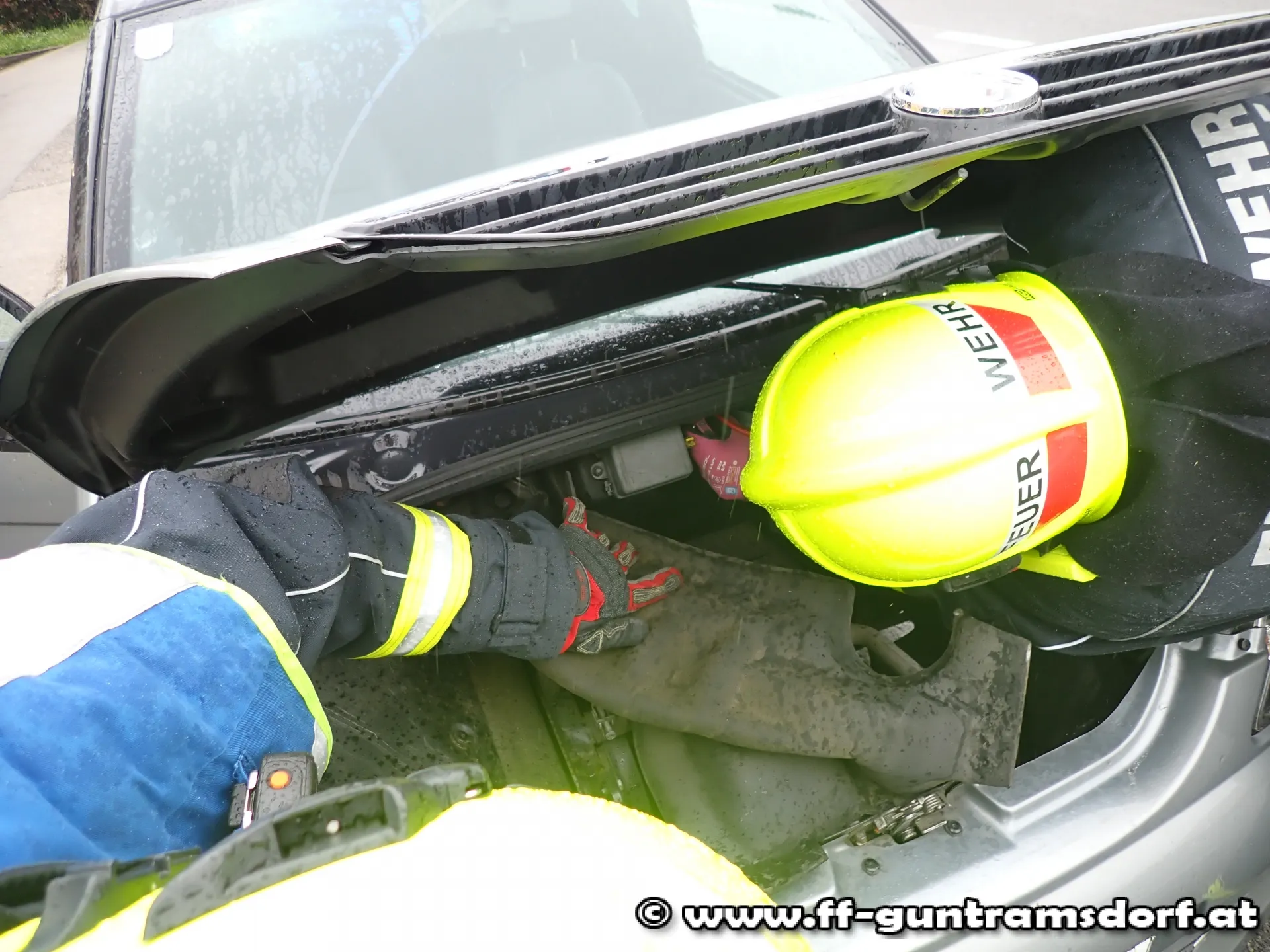 Um 17.03 Uhr wurde die FF Guntramsdorf zu einem Fahrzeugbrand auf die B17 alarmiert. Ein Fahrzeuglenker nahm während der Fahrt Rauch aus dem Motorraum wahr und stellte daraufhin sein Fahrzeug in einer Bushaltestellte ab.