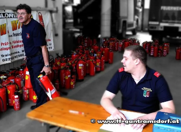 Alle 2 Jahre soll ein Handfeuerlöscher überprüft werden. Daher organisiert die FF Guntramsdorf bereits seit den 1980-iger Jahren alle 2 Jahre eine derartige Überprüfungsaktion.
