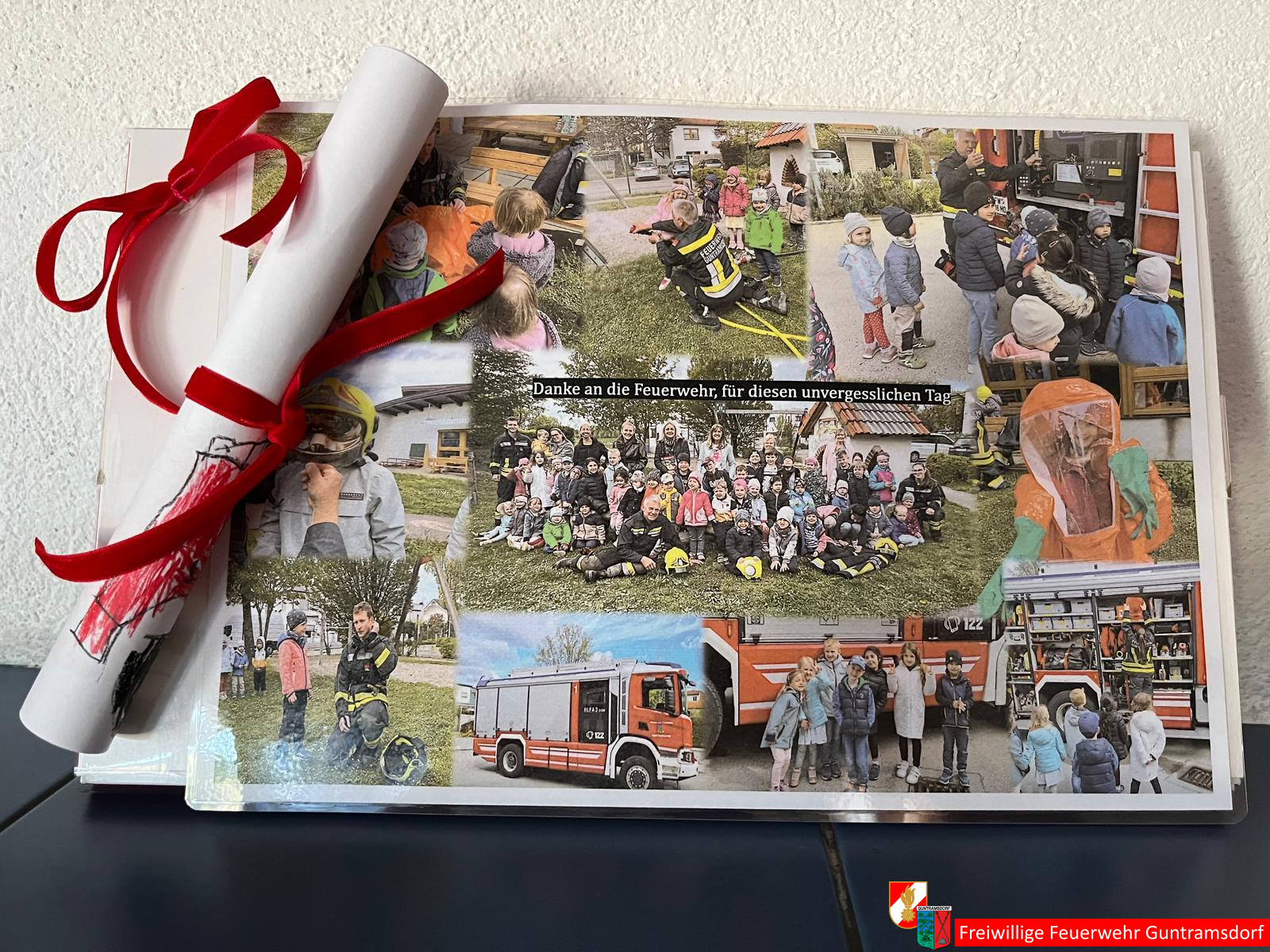Mit einer Fotocollage bedankten sich die Kinder bei der Feuerwehr für diesen unvergesslichen Tag.