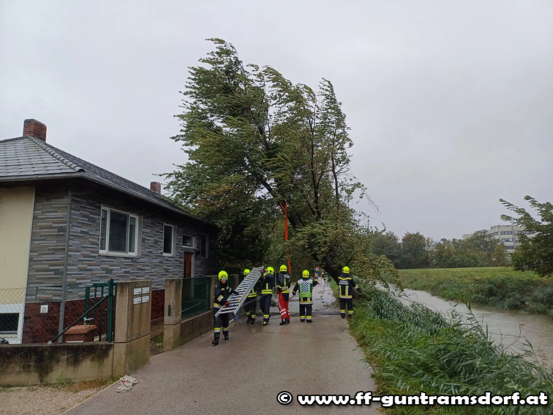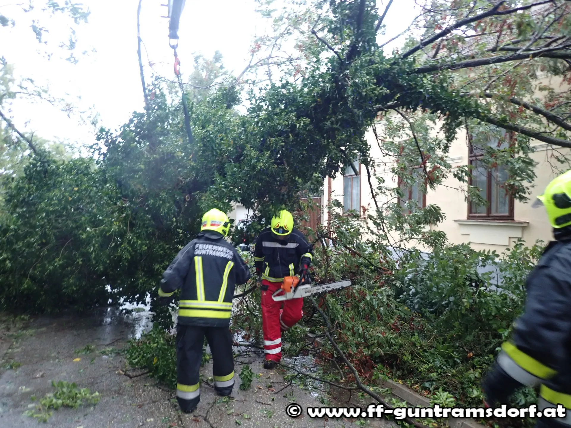 Auf Grund des anhaltenden Regens und Sturmspitzen um 80 km/h, kommt die Mannschaft der Feuerwehr Guntramsdorf, so wie auch alle anderen Feuerwehren des Bezirkes Mödling nicht zur Ruhe.