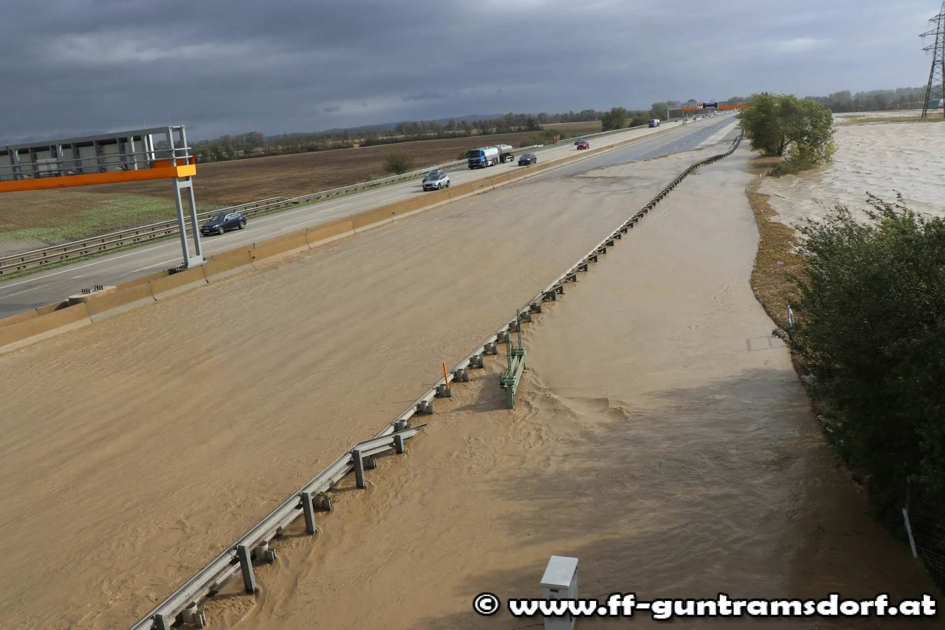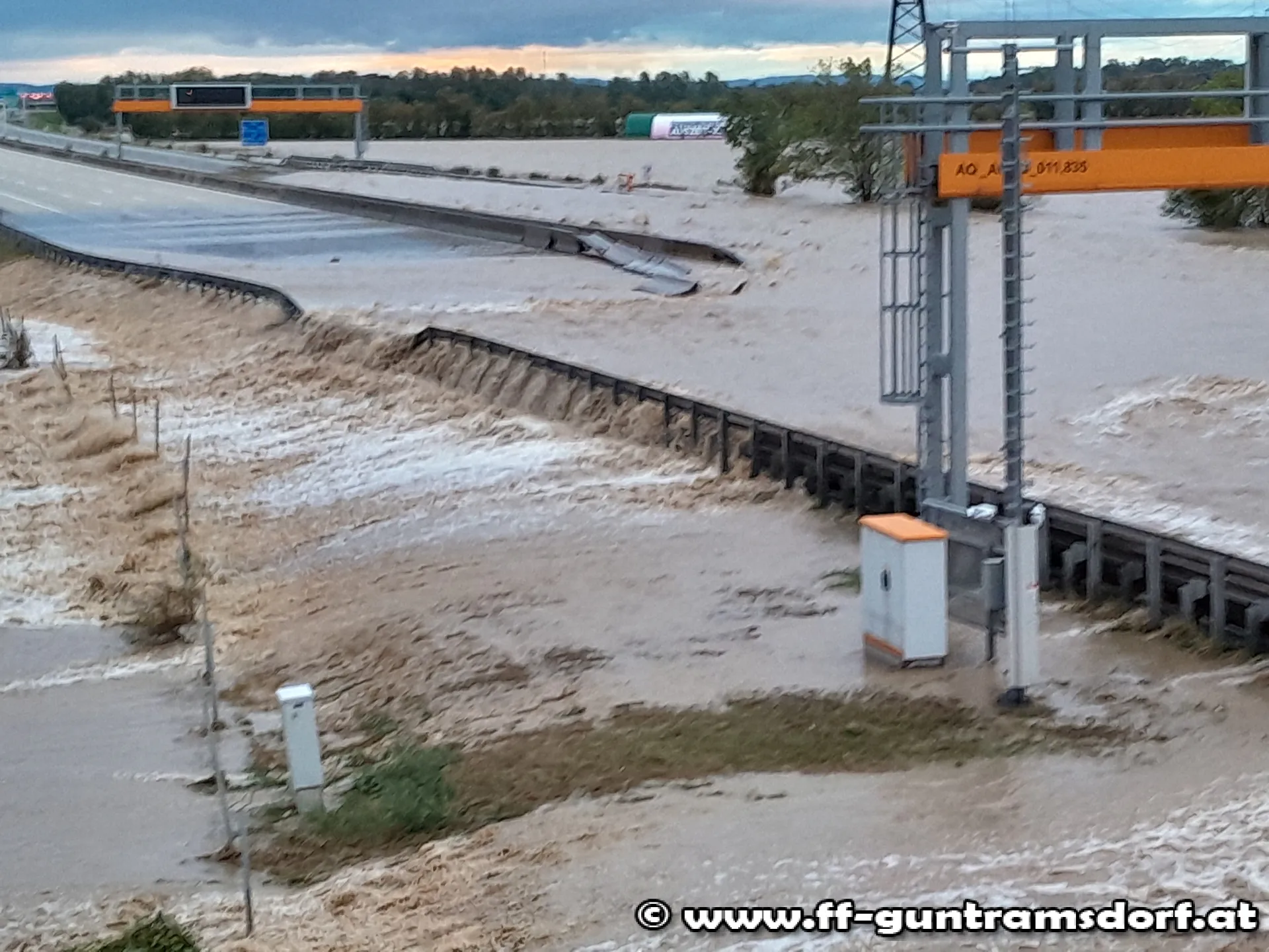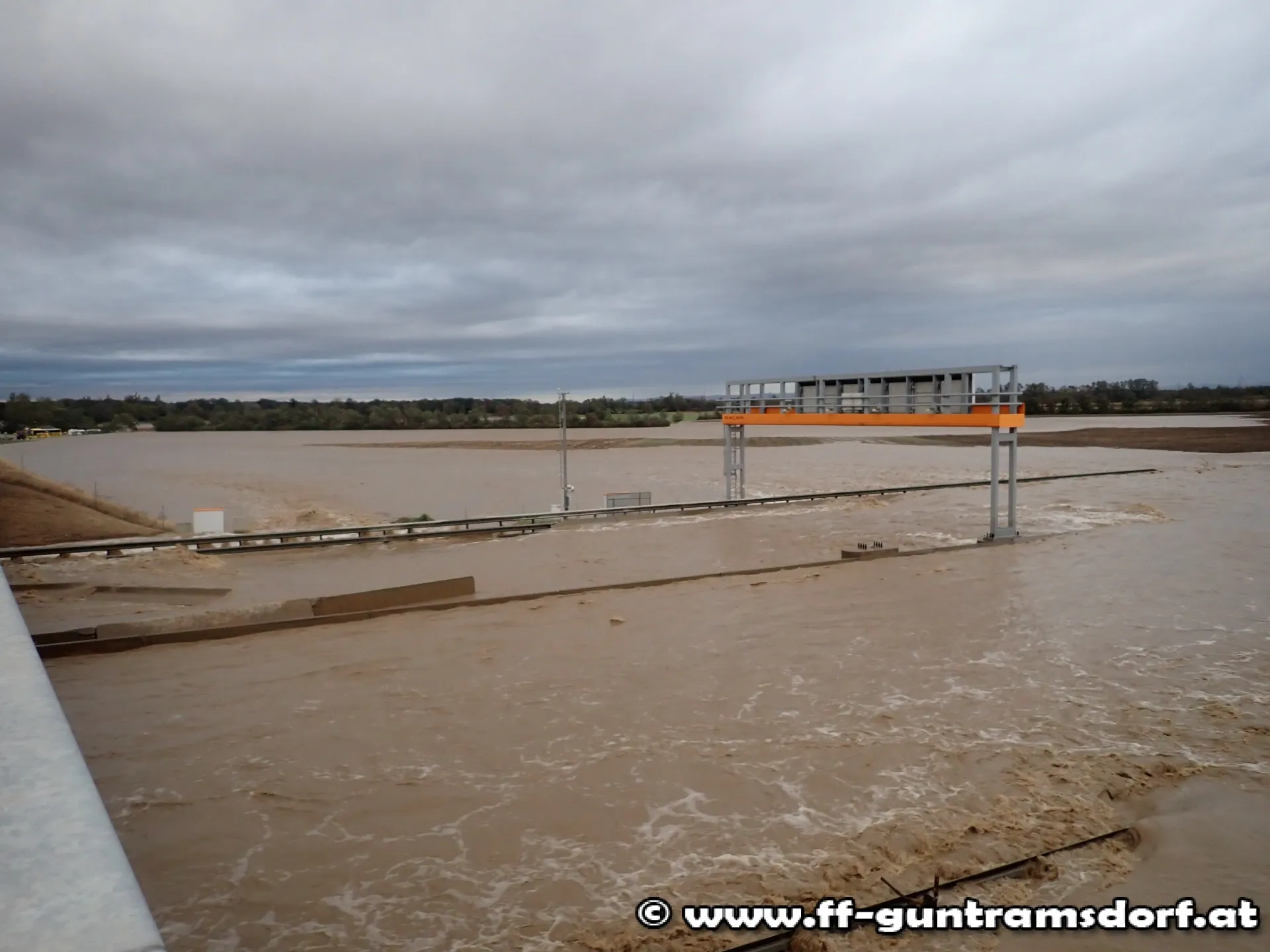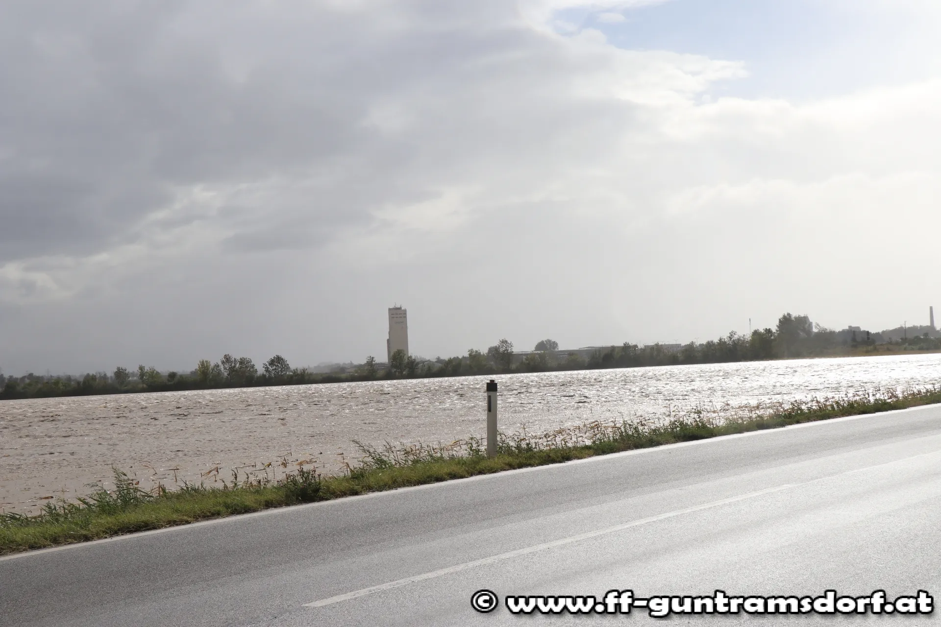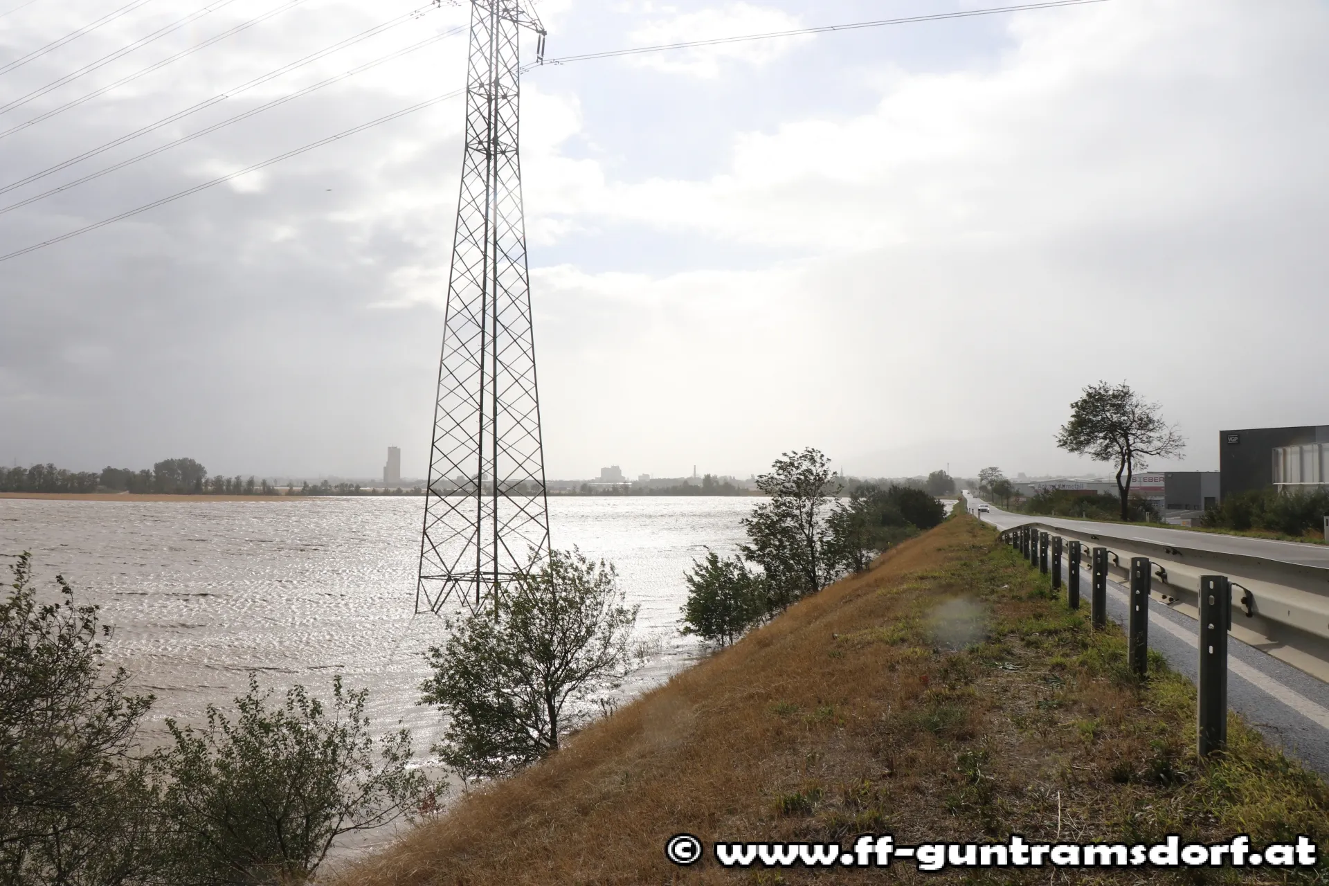 An einzelnen Abschnitten des Schwechat-Damms tritt der Fluss auch am linken Ufer – also Richtung Ortsgebiet – über. Die Feuerwehr Guntramsdorf arbeitet in Kooperation mit der Gemeinde daran, die betroffenen Stellen zu verstärken und die Wohngebiete zu schützen!