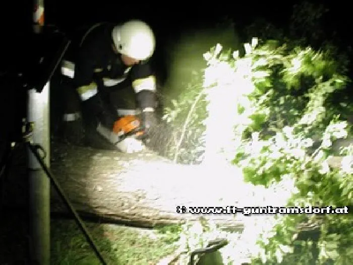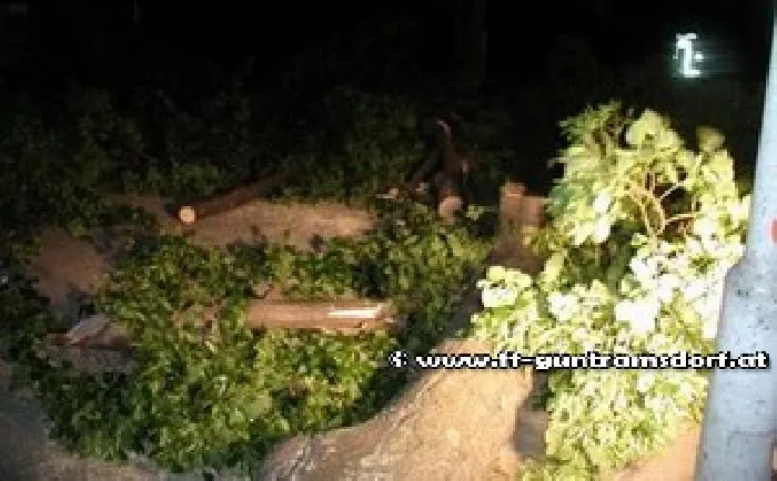 In der Nacht wütete ein heftiger Sturm, teilweise von Starkregen begleitet über Teilen des Bezirks Mödling, so auch in Guntramsdorf. Dadurch wurde in den späten Abendstunden ein stattlicher Baum mit gut einem halben Meter Stammdurchmesser regelrecht gefällt.