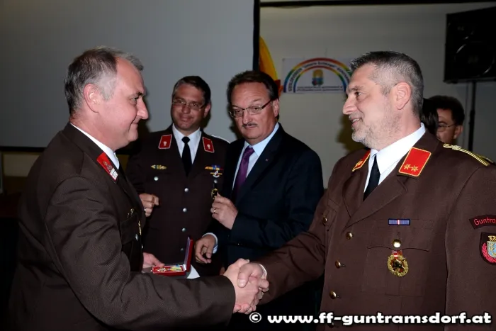 Feuerwehrkommandant EBR Robert Moser überreichte zu Beginn der Feierlichkeiten EHBM Johannes Vystrcil, unserem langjährigen Fahrmeister, das Verdienstzeichen 2. Klasse des NÖ Landesfeuerwehrverbandes.