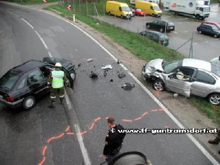 Einmal mehr ein folgenschwerer Unfall auf der Viaduktstraße! Der Lenker eines in Richtung B17 fahrenden schwarzen Ford Escort geriet auf der regennassen Fahrbahn der Viaduktstraße auf Höhe der Südbahnunterführung aus ungeklärter Ursache nach links und prallte dort frontal gegen einen entgegen kommenden PKW, der mit drei Personen besetzt war. Obwohl beide Fahrzeuge bei dem Zusammenstoß schwerst beschädigt worden waren, konnte alles Insassen aus den Wracks befreit werden. Der Lenker des Ford wurde auf Grund seiner schweren Verletzungen mit dem Notarzthubschrauber ins Krankenhaus geflogen, die Insassen des anderen Fahrzeuges wurden mit Verletzungen unbestimmten Grades mit der Rettung ins Spital gebracht. Lediglich der dritte Insasse, ein 15jähriger Bursche aus Guntramsdorf. blieb dem Vernehmen nach unverletzt.