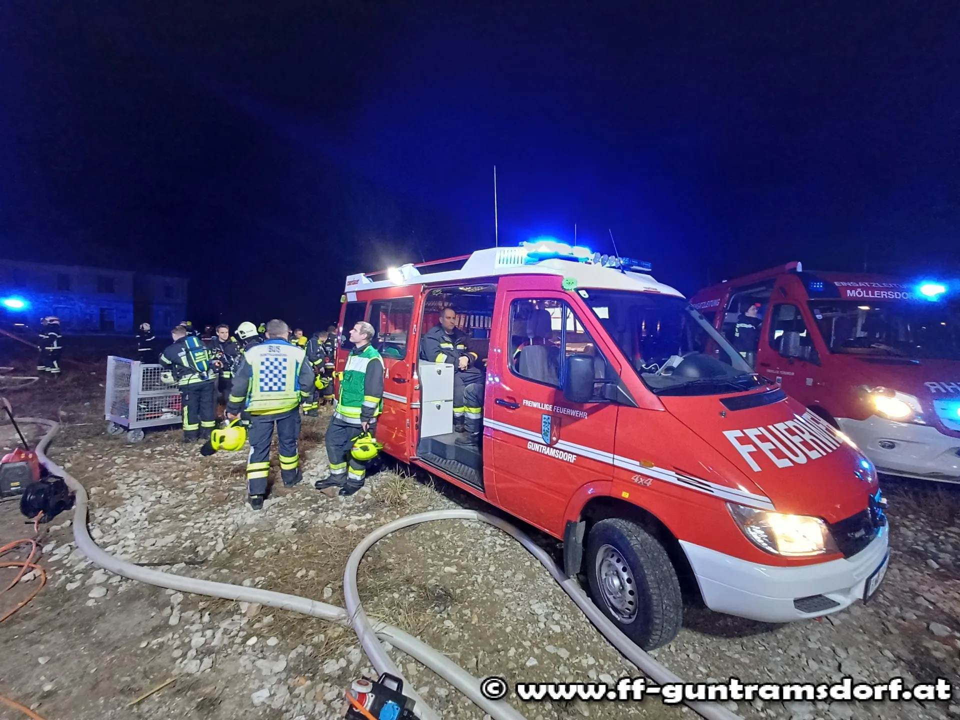 Die Kräfte aus Guntramsdorf rückten mit 6 Fahrzeugen zur Unterstützung aus. Unsere Aufgaben waren weitreichend. Diese bestanden in der Unterstützung der Einsatzleitung, Aufbau und Leitung des Atemschutzsammelplatzes, Stellung von Atemschutzgeräteträgern und Unterstützung beim Löschangriff sowie in der Löschwasserversorgung.