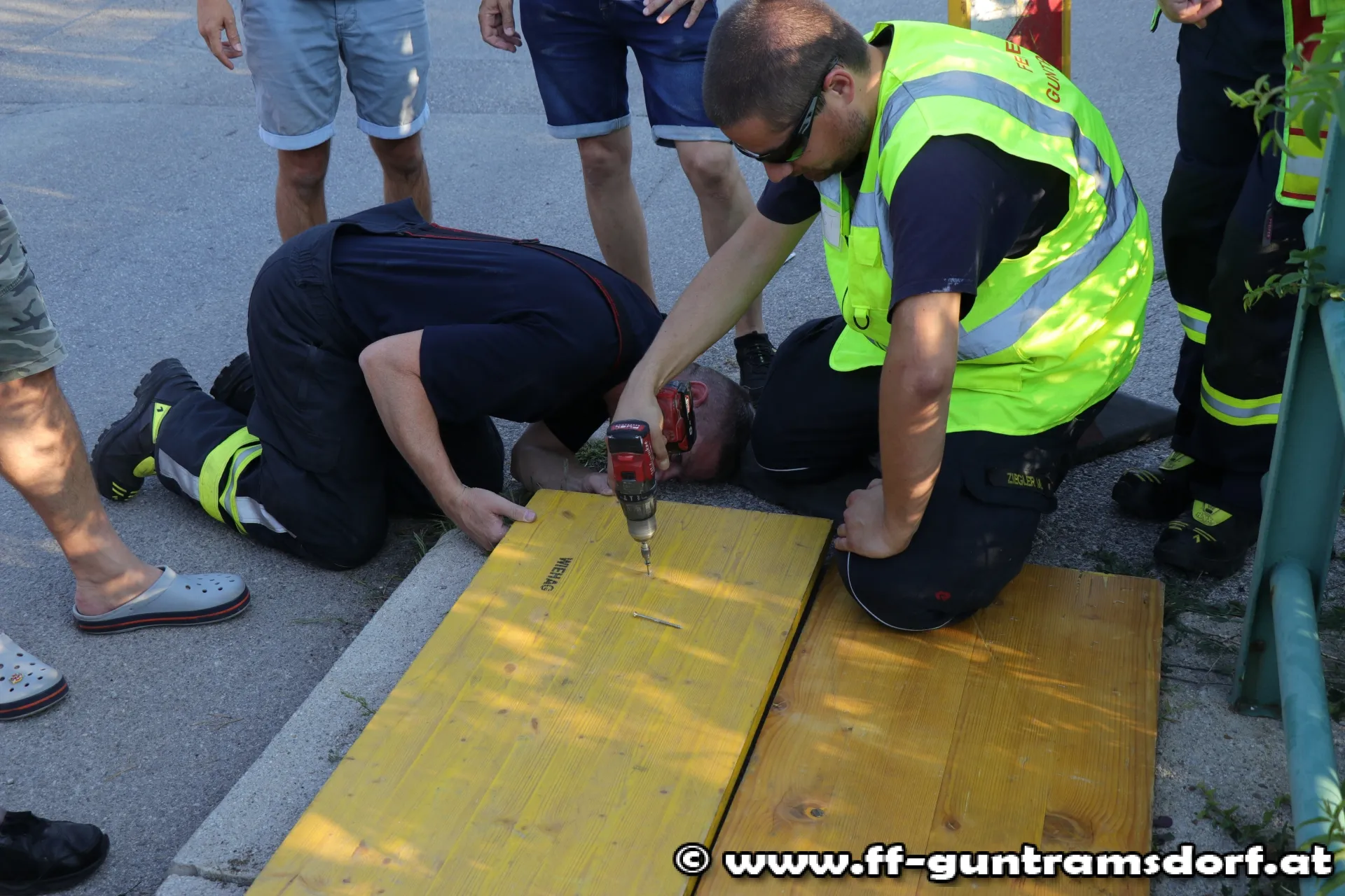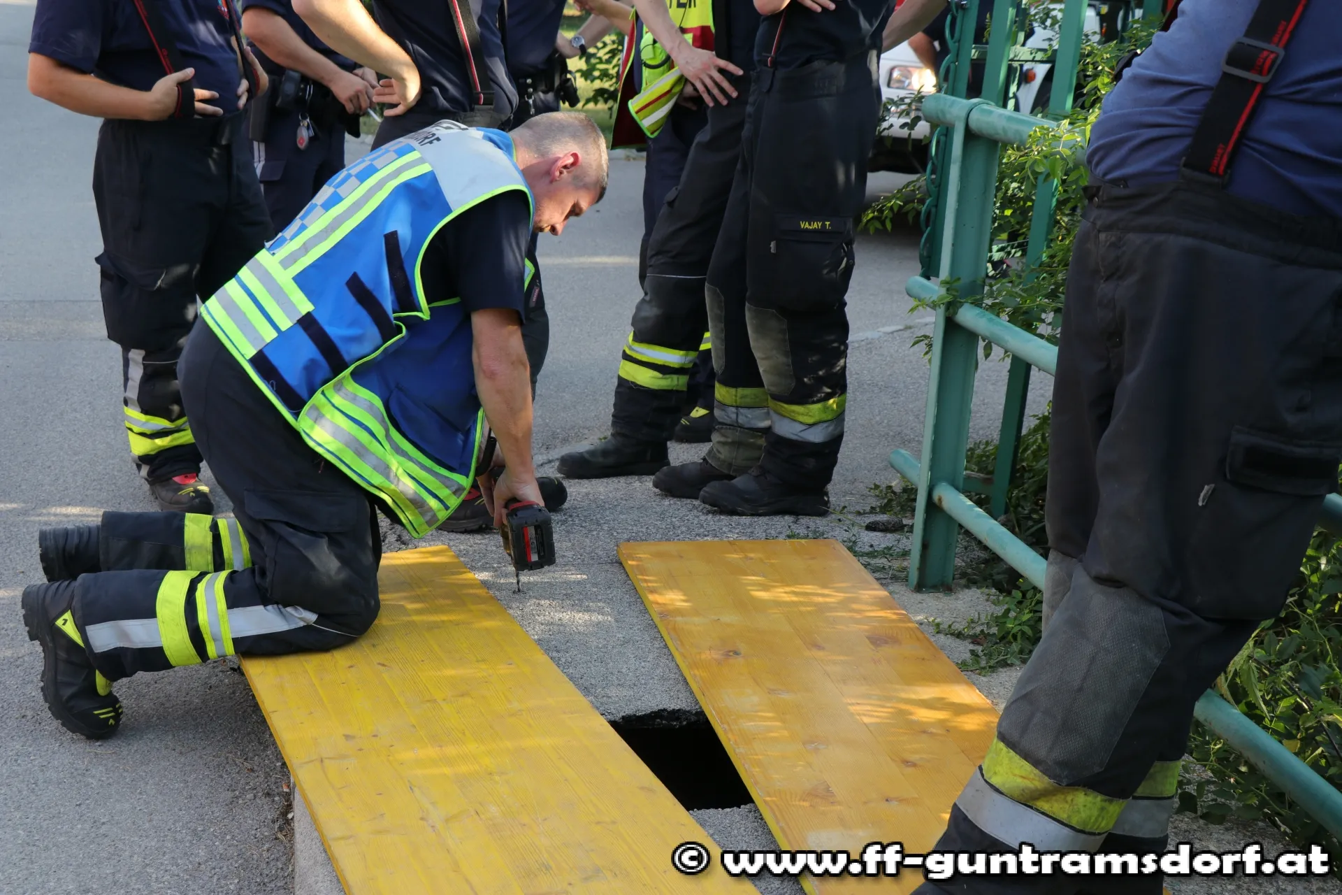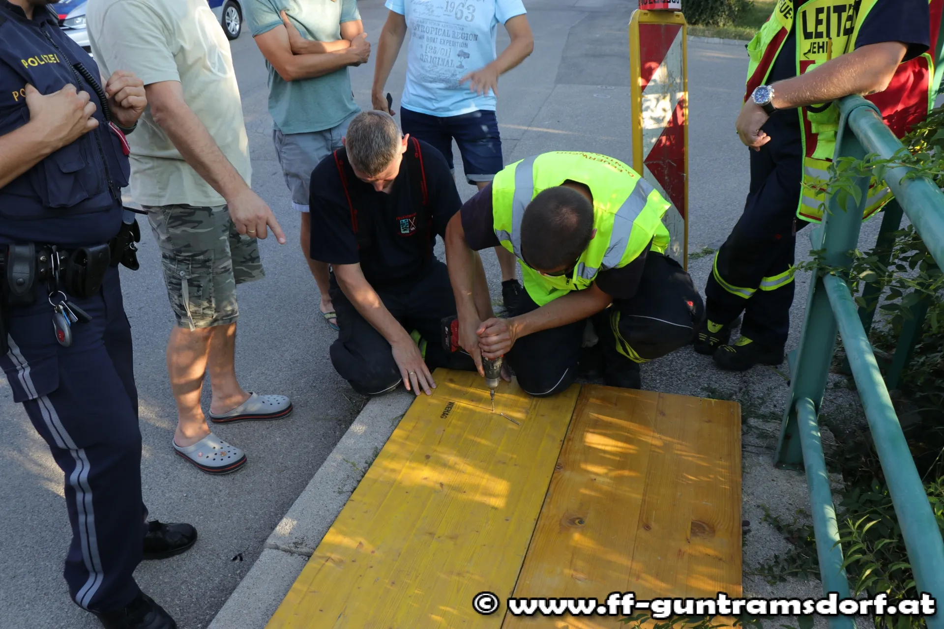 Die Feuerwehr deckte das Loch mit Schalungstafeln ab und sicherte den Bereich mit Absperrbändern ab. Da die Isolierung des darunterliegenden Stromkabels augenscheinlich beschädigt war, wurden auch die Wiener Netzte verständigt.
