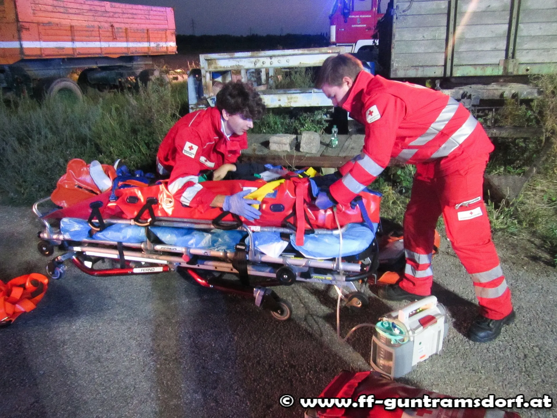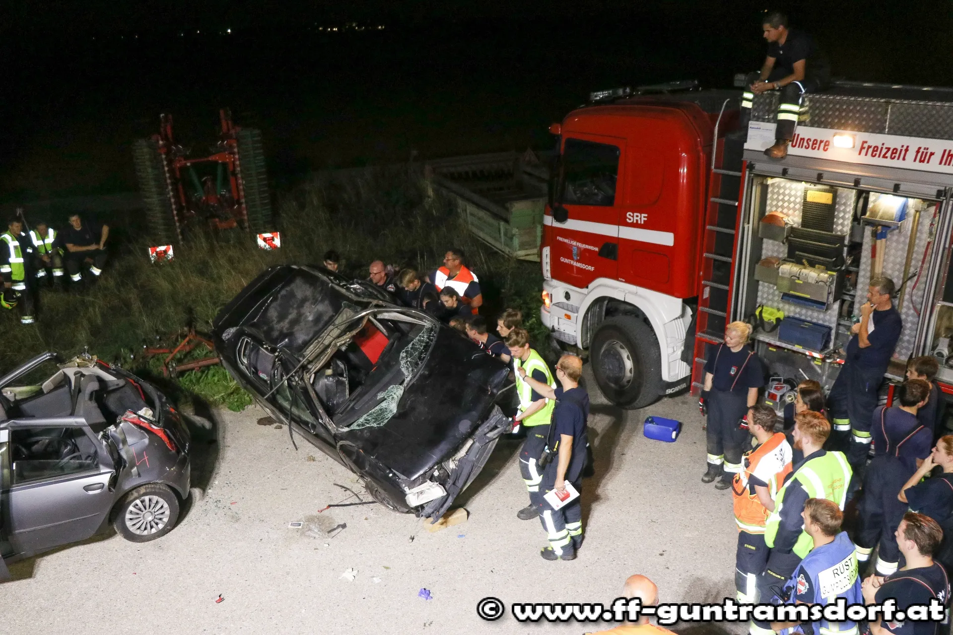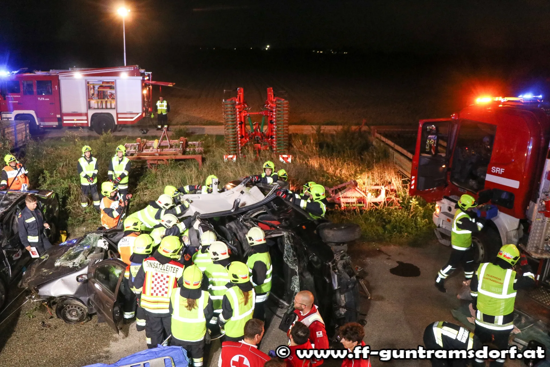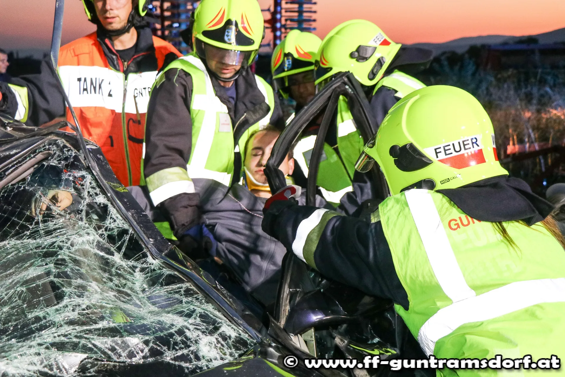 Da auch im „realen“ Einsatz ein solch großes Szenario alleine durch die Feuerwehr Guntramsdorf nur schwer zu bewältigen wäre, wurde die Feuerwehr Gumpoldskirchen mit einem Fahrzeug zur Übung eingeladen und eingesetzt.