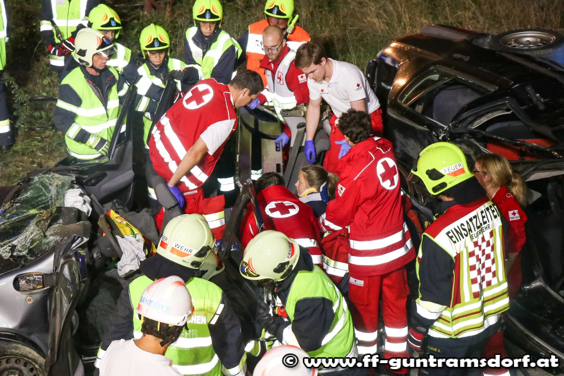 Übungsannahme war ein Verkehrsunfall von drei PKWs, wobei vier Personen im Fahrzeug eingeklemmt waren. Um die Übung möglichst realistisch zu gestalten, wurden neben den Übungspuppen auch „echte“ Übungsdarsteller als Verletzte eingesetzt.