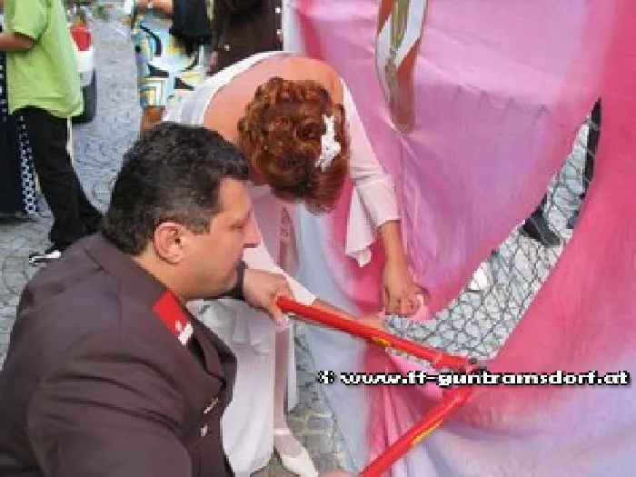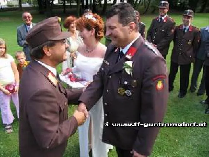 Dass Feuerwehrleute heiraten, kommt immer wieder vor. Dass aber ein Feuerwehrmann der FF Guntramsdorf in Uniform heiratet, gab es zum letzten Mal im Jahre – ja wann denn eigentlich? Nicht einmal die älteren Mitglieder konnten sich an eine Hochzeit erinnern, bei welcher der Bräutigam anstatt eines Anzugs die Feuerwehruniform anhatte.