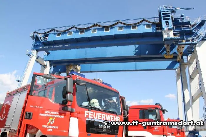 Am 23. Und 24. September 2011, fand in Tschechien (Stausee Nové Mlýny) und in der Slovakei (Raffinerie Slovnaft in Bratislava) eine internationale Übung des Katastrophen-Hilfsdienstes (KHD) statt. Die FF Guntramsdorf war dabei mit HLM Robert Weber vertreten, der mit dem Tauchdienst, an beiden Übungstagen dabei war. Szenario 1. in der Slowakei – Leck eines Schiffes (Aufgaben für die KHD-Bereitschaft NÖ) und ein Fahrzeug ist in das Hafenbecken gestürzt und eine Person abgängig. Die Aufgabe des Tauchdienstes: suchen des Fahrzeuges, markieren, Person bergen und Fahrzeug bergen. Bei 0-Sicht konnten die Taucher das Fahrzeug orten und markieren. Weiteres wurde die Person geborgen und dann das Fahrzeug gehoben und geborgen. Nach dem Abendessen ging es für den Tauchdienst weiter in die Tschechien. Dort wurde am zweiten Tag weiter geübt. Szenario 2. in Tschechien – Hochwasserszenarien für die KHD-Bereitschaft NÖ und die Sonderdienste. Die Aufgabe der Taucher: suchen eines Ankers mittels Kreispendelmethode. Hierbei wurde das neue Tauchertelefon getestet und wiederum bei 0-Meter-Sicht geübt. Als Resümee der Übung konnten wir einen internationalen Vergleich der Feuerwehr aus Niederösterreich, Slowakei und Tschechien sehen. Weiteres wurde die Zusammenarbeit gefördert und Grundsteine für weitere Projekte gelegt. Für die Arbeit der Arbeitsgruppe KHD konnten auch wichtige Erkenntnisse gewonnen werden, die Erprobung neuer Einsatzmitteln und das Begutachten der tschechischen Fahrzeuge und Gerätschaften.