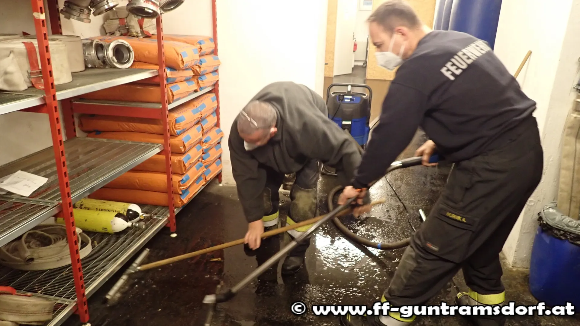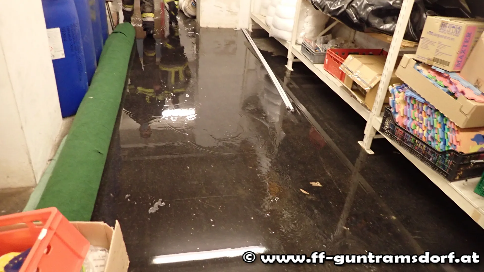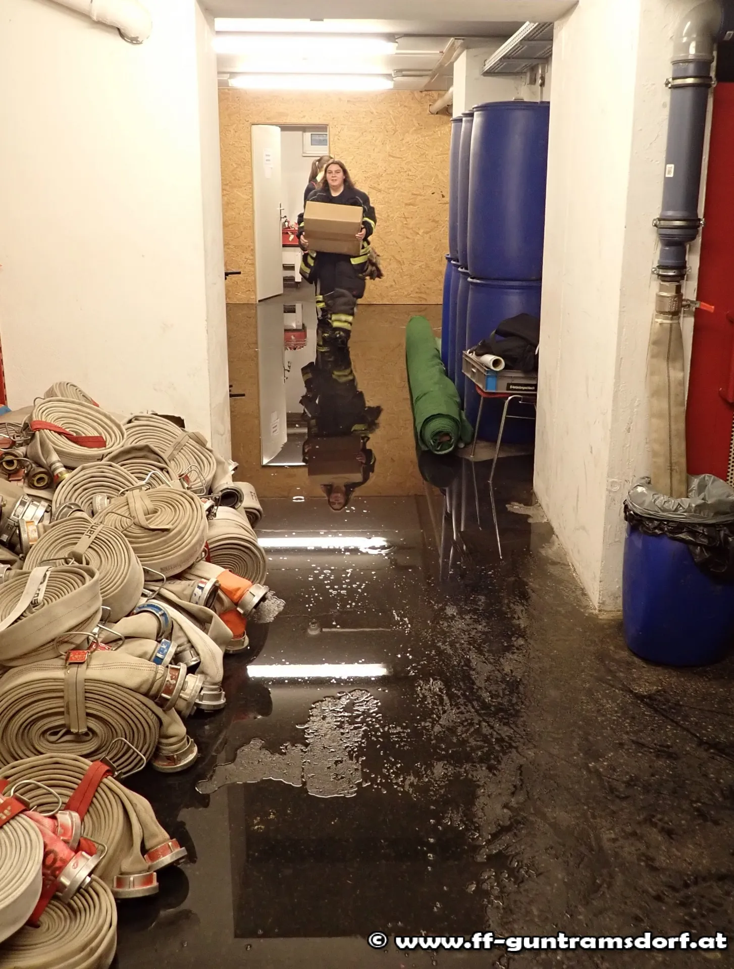 Gleichzeitig musste im Keller, auf Grund des momentanen Umbaus, zwischengelagertes Material umgeschlichtet werden. Anschließend wurde mit einem Nasssauger und Gummiabziehern der Keller wieder trocken gelegt.