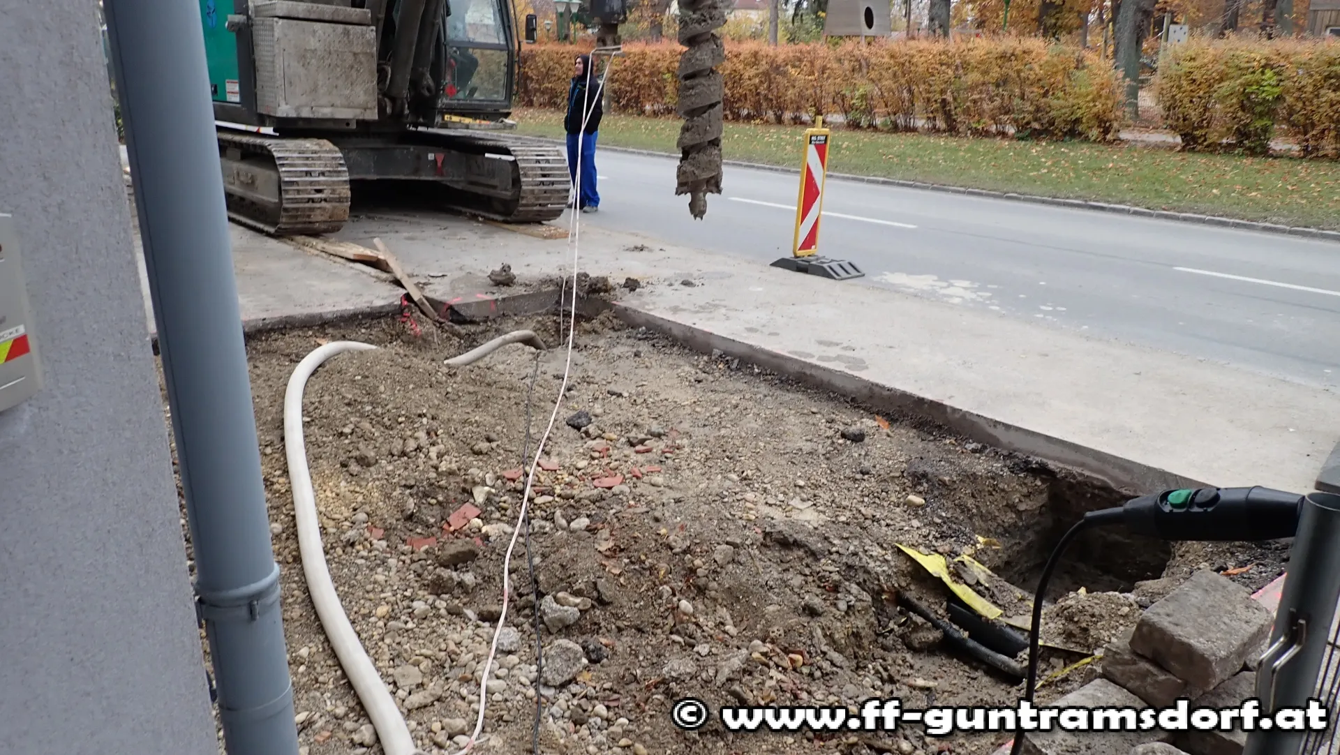 Wie sich herausstellte, traf ein Bohrbagger bei Arbeiten für den geplanten Lift im Feuerwehrhaus ein Rohr der Ortswasserleitung. Das austretende Wasser gelangte in weiterer Folge auch in einige Kellerräume des Feuerwehrhauses.