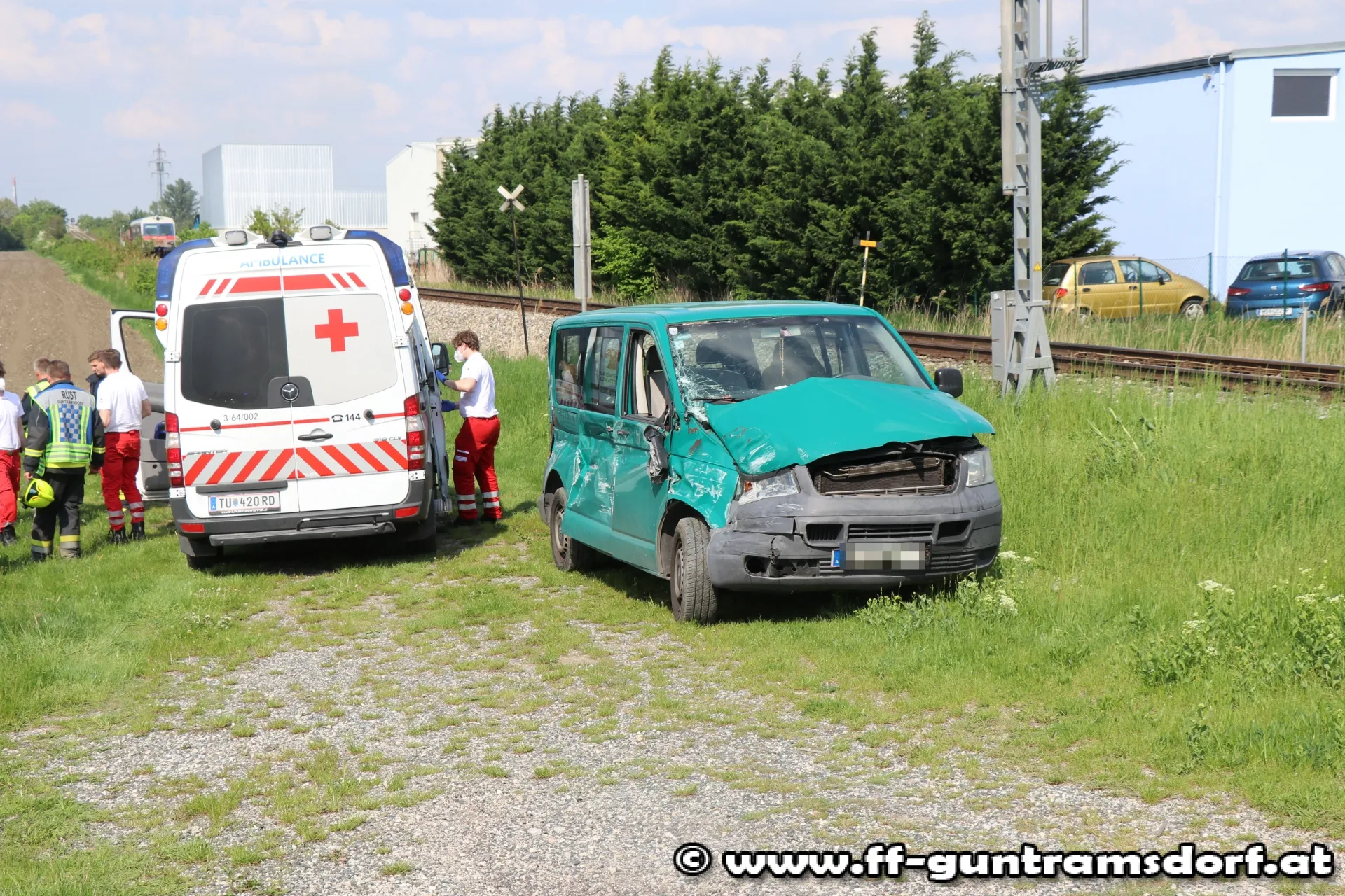 Der Lenker eines aus Guntramsdorf kommenden Kleintransporters hatte das Rotlicht übersehen und prallte mit seinem Wagen gegen eine Triebwagengarnitur der Aspangbahn.