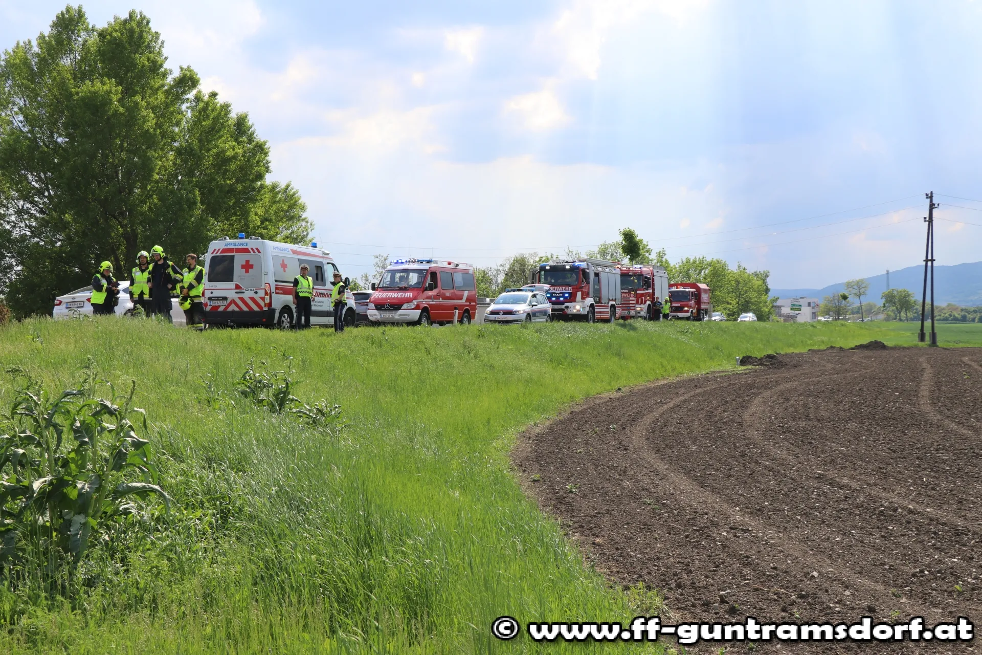 – FF Guntramsdorf mit 4 Fahrzeugen und 15 Mitgliedern (7 Mitglieder in Reserve im Feuerwehrhaus)