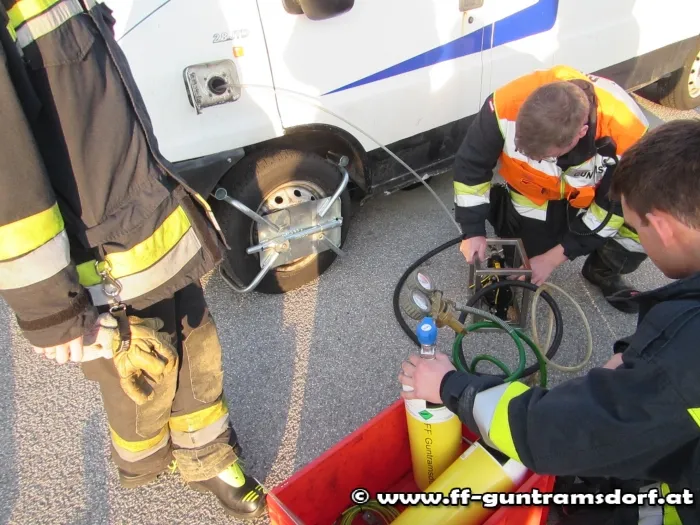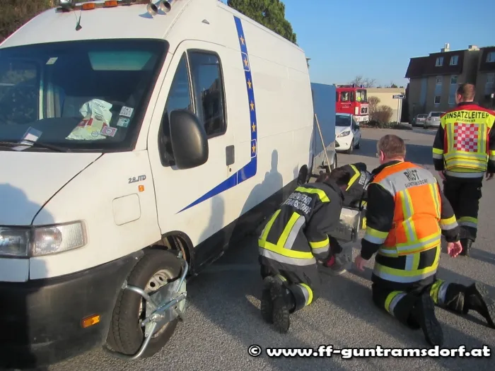 Kurz nach der Alarmierung rückten 3 Fahrzeuge zur Einsatzstelle aus, wo die Einsatzkräfte bereits von der anwesenden Polizei empfangen wurden. Aus einem Kastenwagen trat aus unbekannter Ursache eine größere Menge Kraftstoff aus. Mittels Zement konnte der Schadstoff gebunden und der restliche Inhalt des Tanks mittels Mineralölpumpe ausgepumpt werden, um eine weitere Verschmutzung zu verhindern.