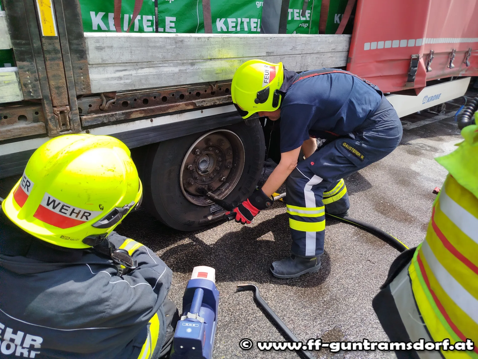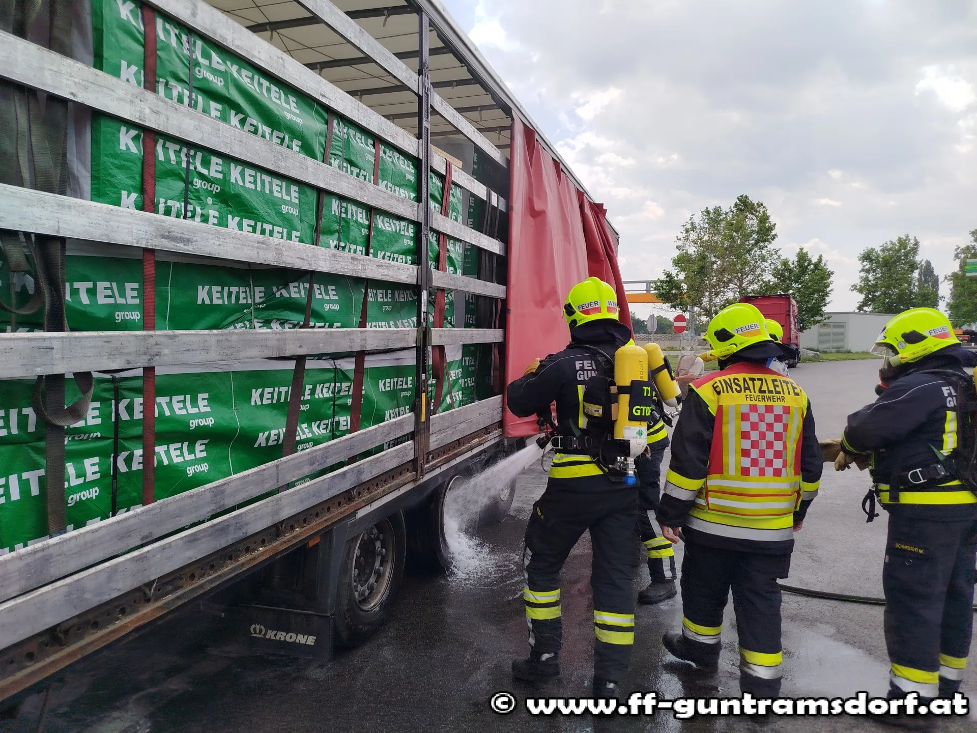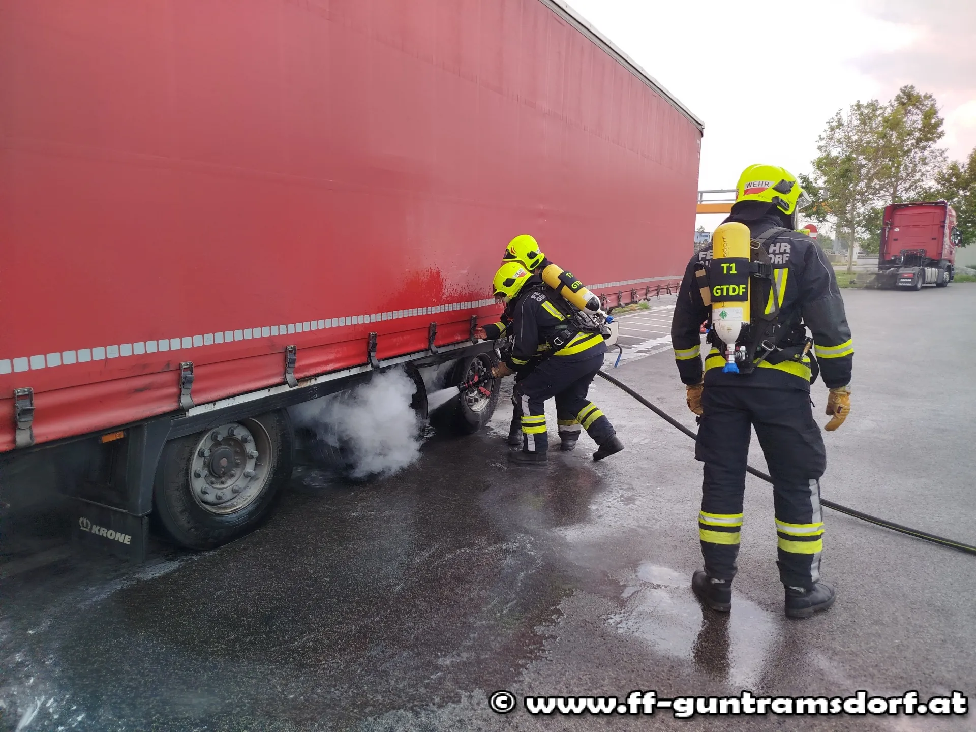 Am Mittwoch den 11.06.2025 wurde die Freiwillige Feuerwehr Guntramsdorf um 12:43 Uhr per Sirene und Pager zu einem LKW-Brand auf die Raststation Guntramsdorf alarmiert. Beim Eintreffen der Einsatzkräfte stand ein Reifen eines Sattelzugs beladen mit Holz in Brand.