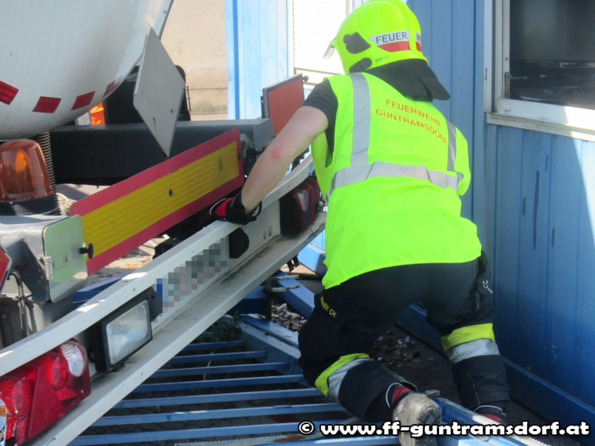Sofort wurde Rücksprache mit dem Chauffeur des LKW gehalten – welcher dann die Entwarnung geben konnte, dass der Tank ohne Inhalt ist.