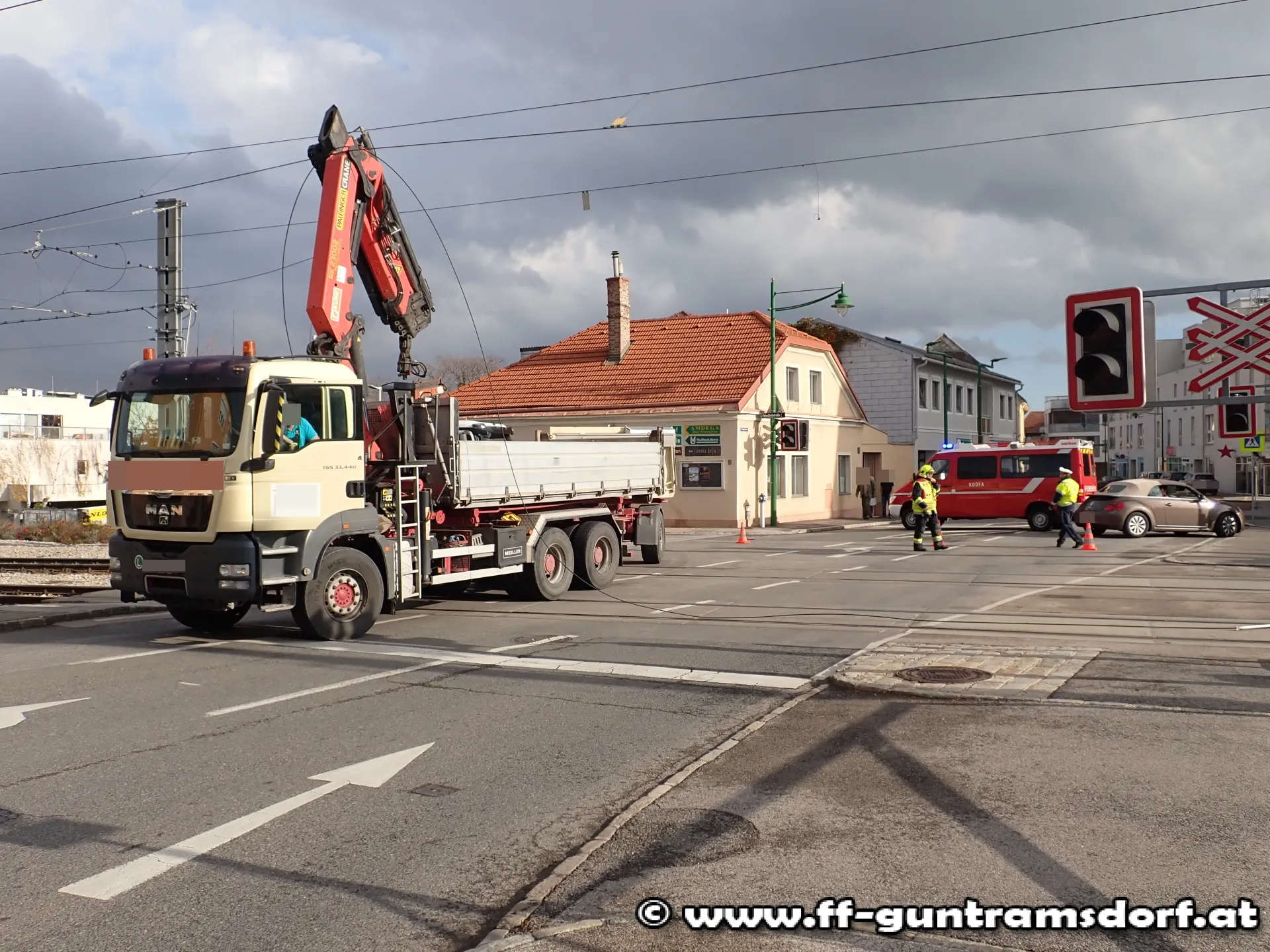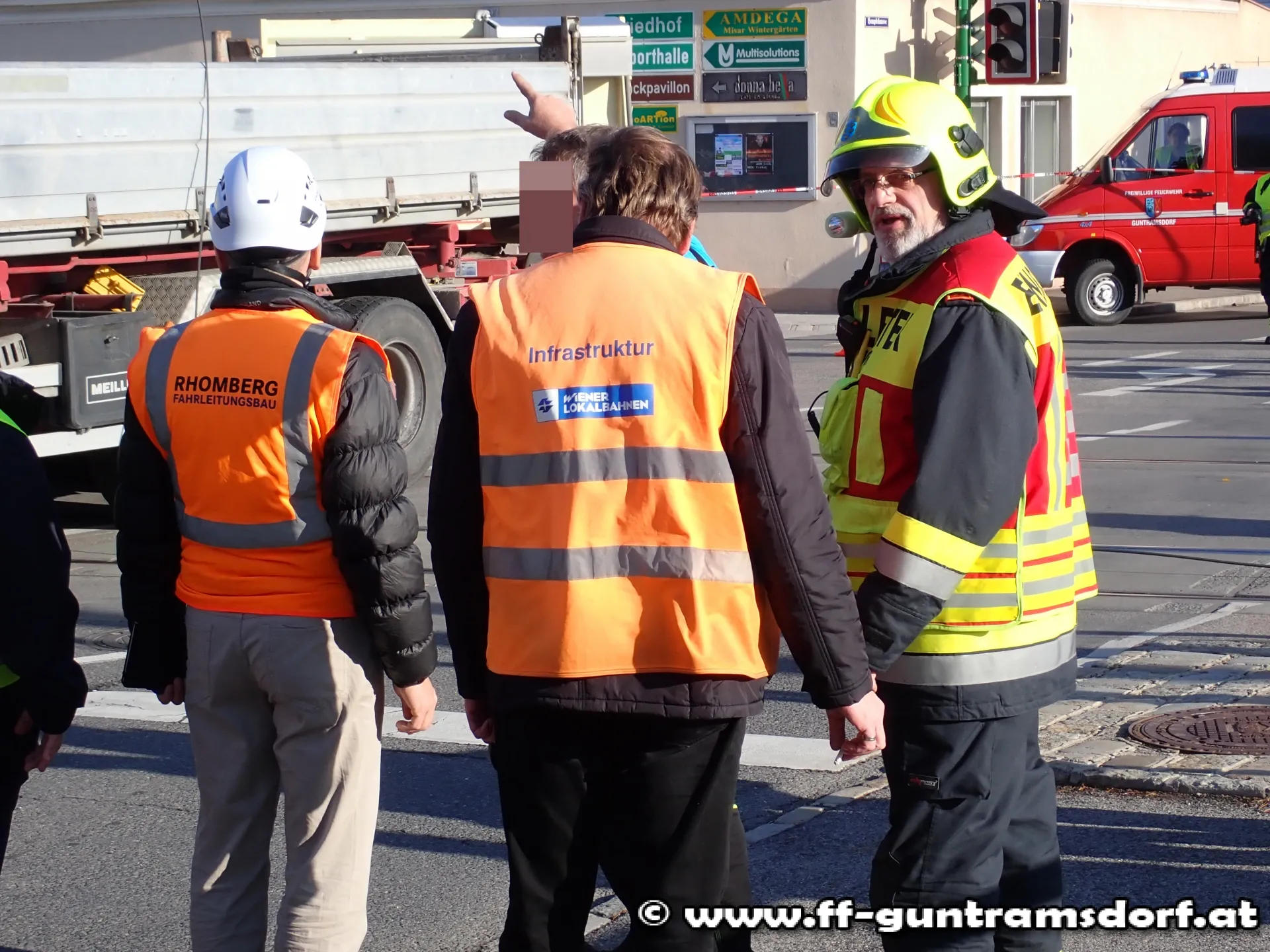 Nachdem der Störungstrupp der Wiener Lokalbahn die Einsatzstelle übernommen hatte rückte die Feuerwehr Guntramsdorf ein.