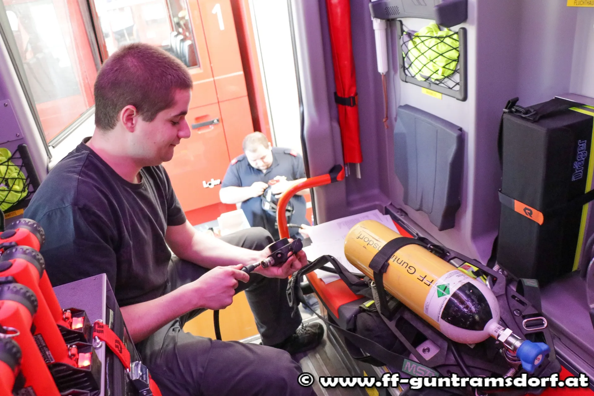 Nachdem alle Mitglieder geschult waren, wurden alle Atemschutzgeräte und Atemschutzmasken von SB Patrick Bognar und HFM Manuel Ziegler umgerüstet.
