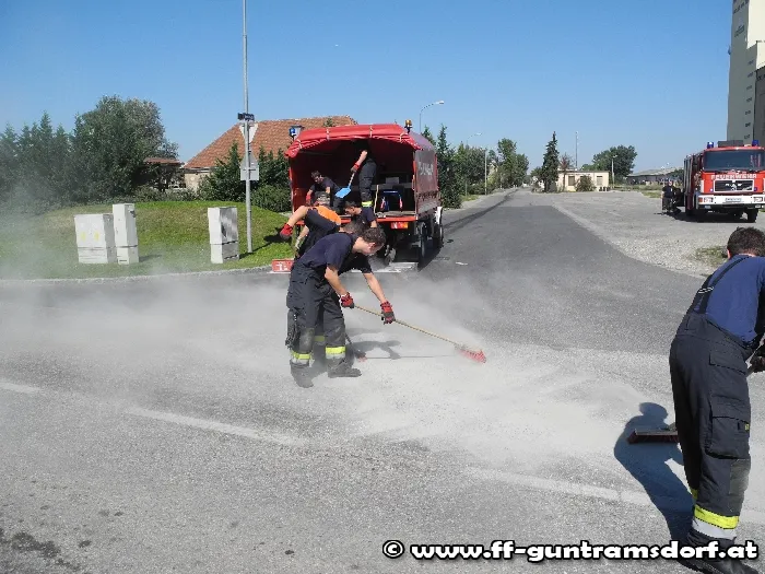 Am 9. September wurde die Feuerwehr Guntramsdorf am frühen Nachmittag durch die Bezirksalarmzentrale zu einer Ölspur alarmiert. Kurz nach der Alarmierung rückten 3 Fahrzeuge zur Einsatzstelle aus. Die Ölspur zog sich die gesamte Bahnstraße und Teile der Münchendorferstraße. Mittels Zement wurde sie gebunden und die Einsatzstelle nach ca. 1 Stunde an die Straßenmeisterei Mödling übergeben.