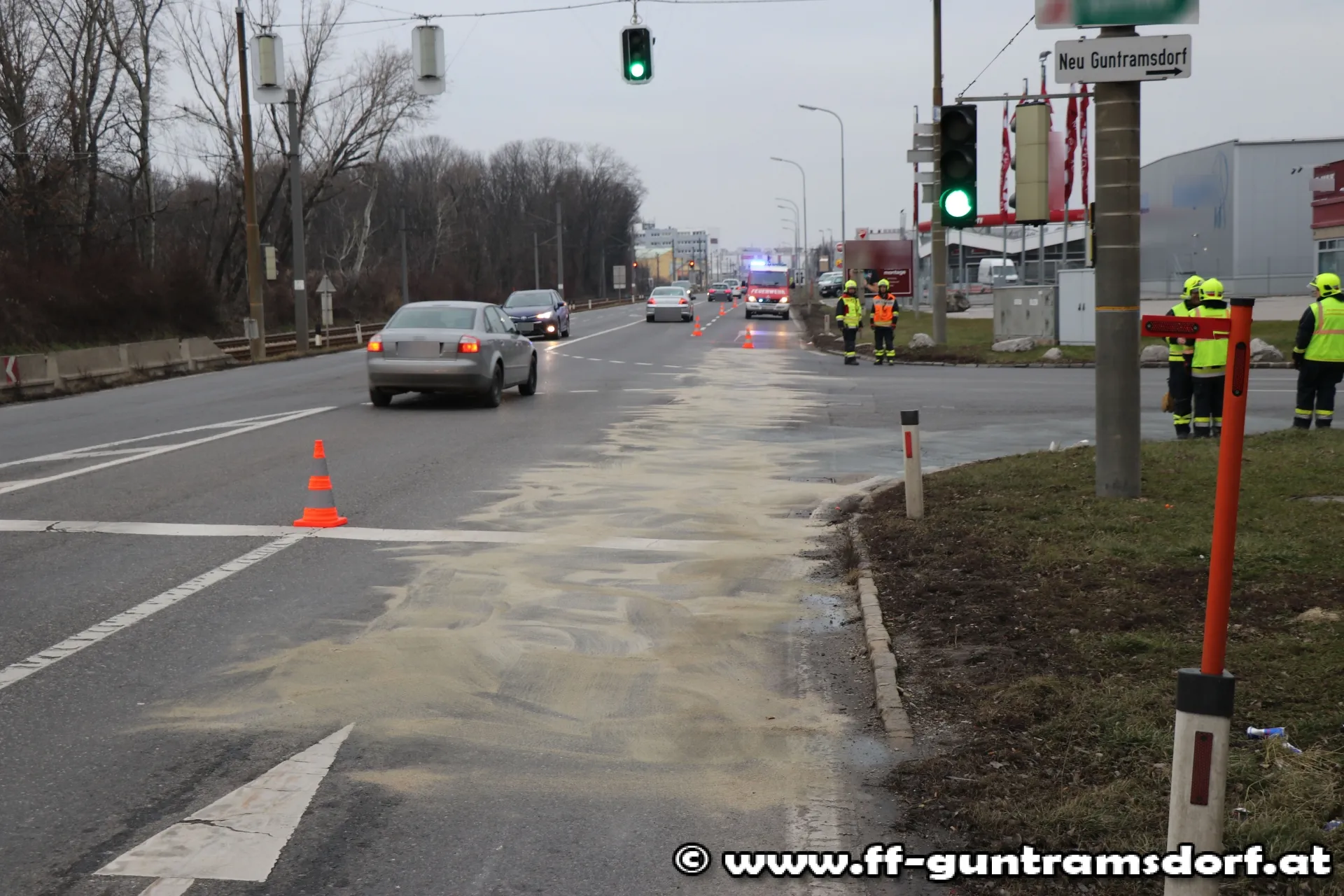 Zur gleichen Zeit bemühten sich auch die Feuerwehren von Mödling und Wiener Neudorf in ihren Einsatzgebieten um die Beseitigung des ausgetretenen Schadstoffes.