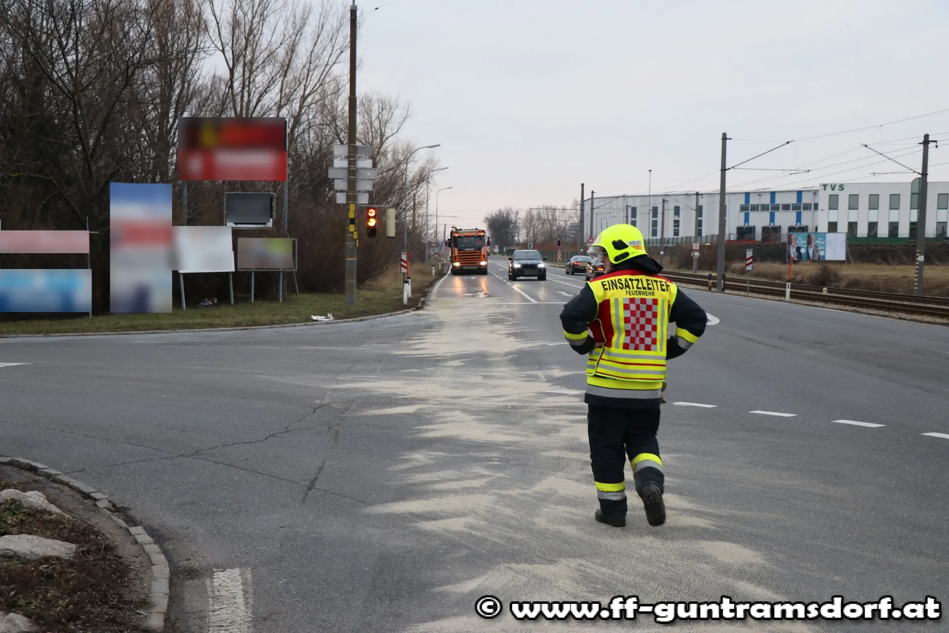 In unserem Gemeindegebiet fanden wir auf der B17 (Richtung Wien, Kreuzung Ozeanstraße) eine rund 100 Meter langen Ölspur vor. Um die Sicherheit zu gewährleisten, wurde ein Fahrstreifen Richtung Wien durch Einsatzfahrzeuge und Verkehrsleitkegeln gesperrt. Währenddessen wurde mit Hilfe von Ölbindemitteln das Öl gebunden und anschließend durch die Straßenmeisterei entfernt.