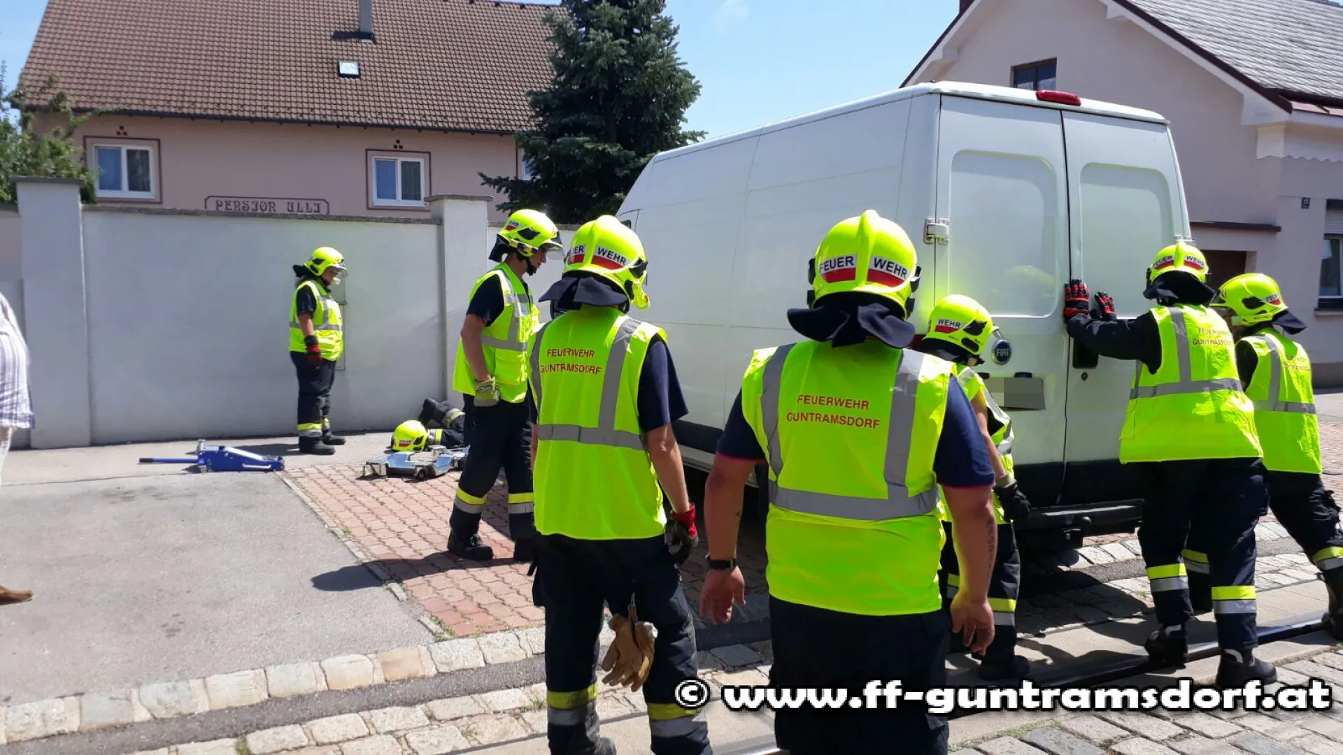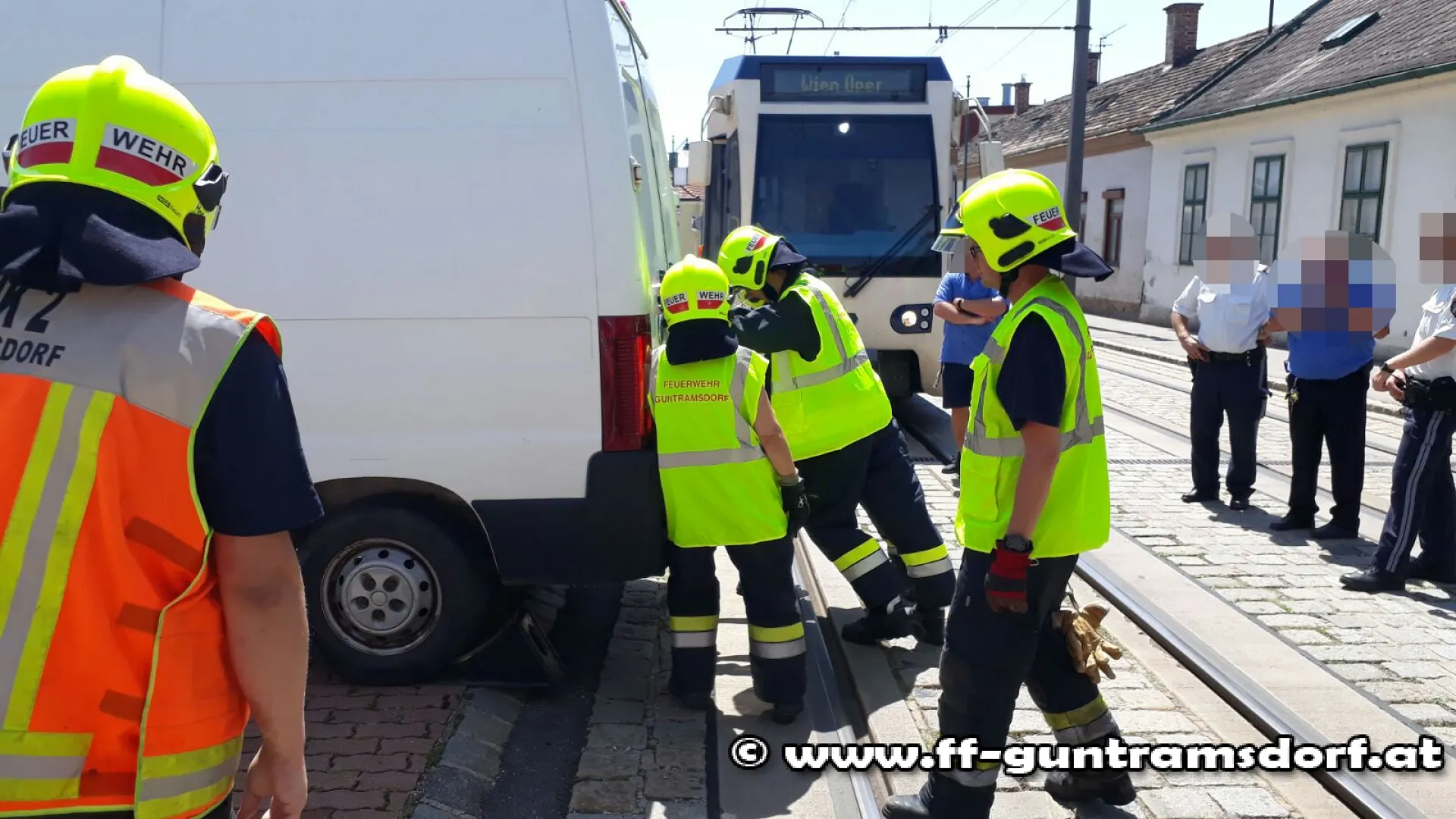 Um 12.55 Uhr wurde die FF Guntramsdorf mittels SMS und Pager mit dem Stichwort „PKW behindert Badner Bahn“ alarmiert. Der Lenker eines Lieferwagens stellte sein KFZ so ungünstig ab, dass das Heck des Fahrzeuges zu weit auf die Straße hinausragte und somit den Weg der Badner Bahn blockierte.