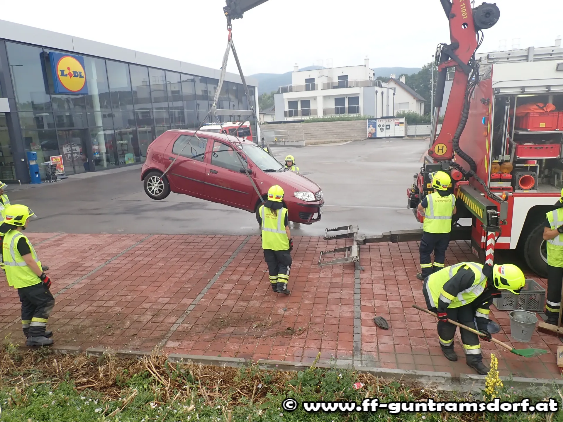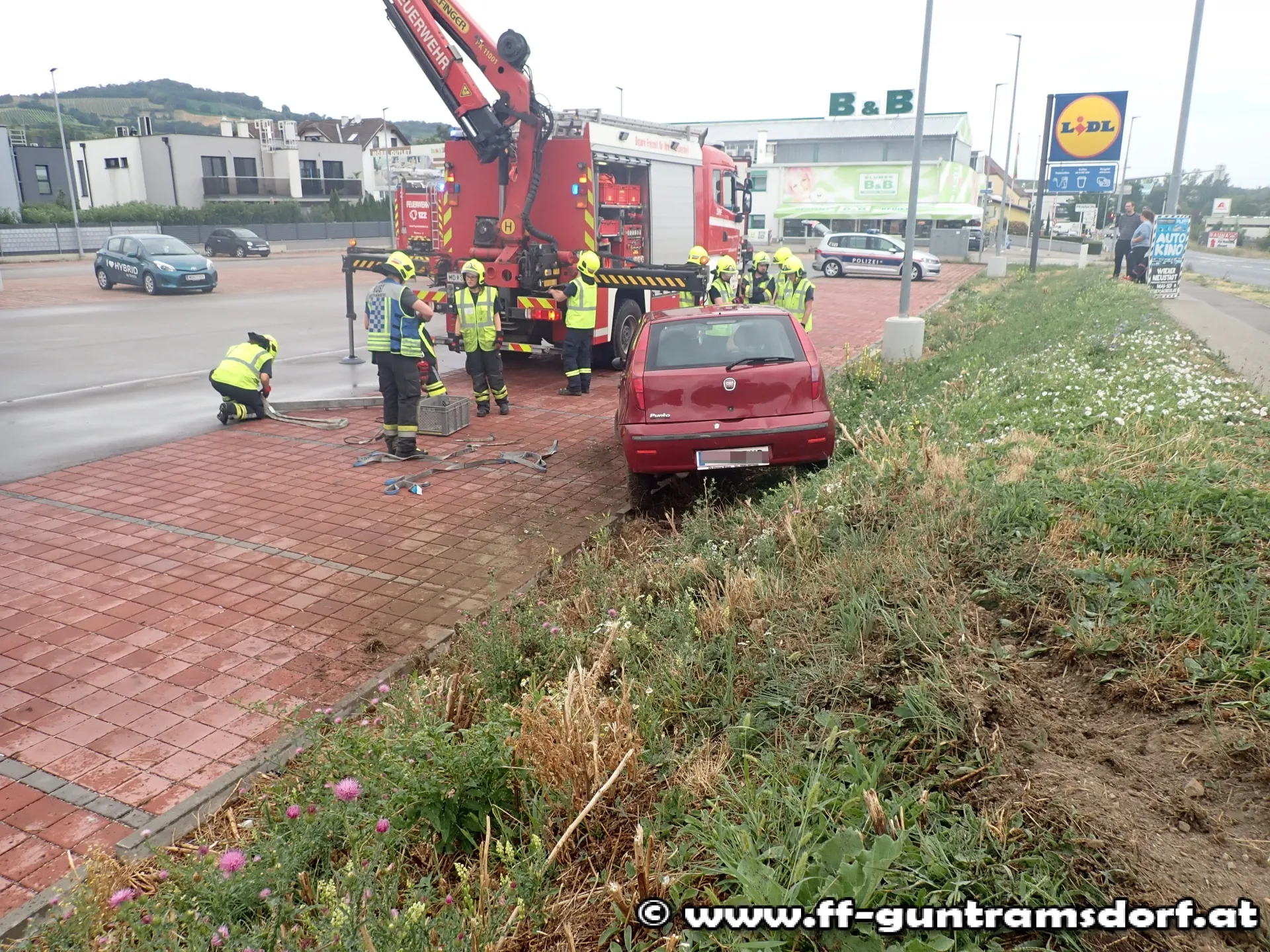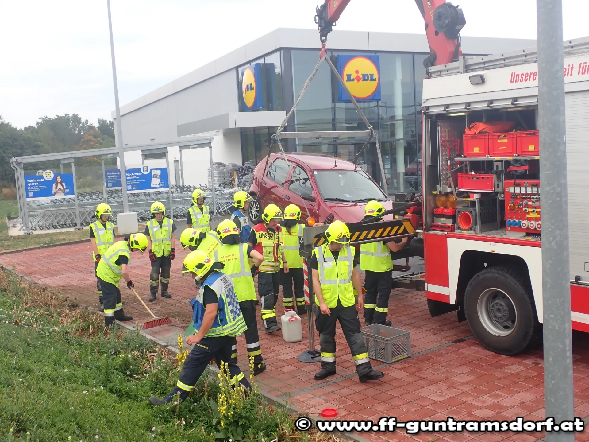 Kurz nach Mittag wurde die FF Guntramsdorf zu einer PKW-Bergung beim Lidl-Markt alarmiert.