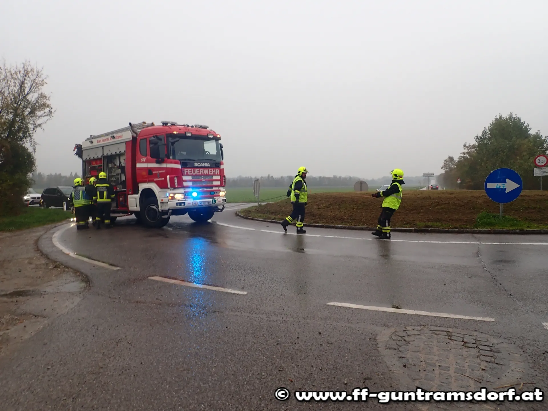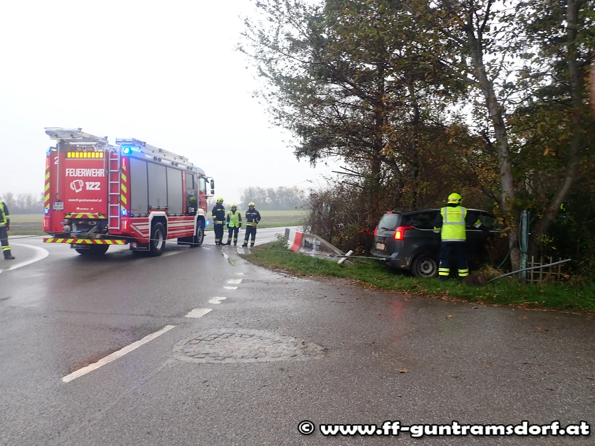 Am 23. Oktober wurde die Feuerwehr Guntramsdorf kurz nach 8 Uhr zu einer Fahrzeugbergung beim Kreisverkehr L2084 alarmiert.