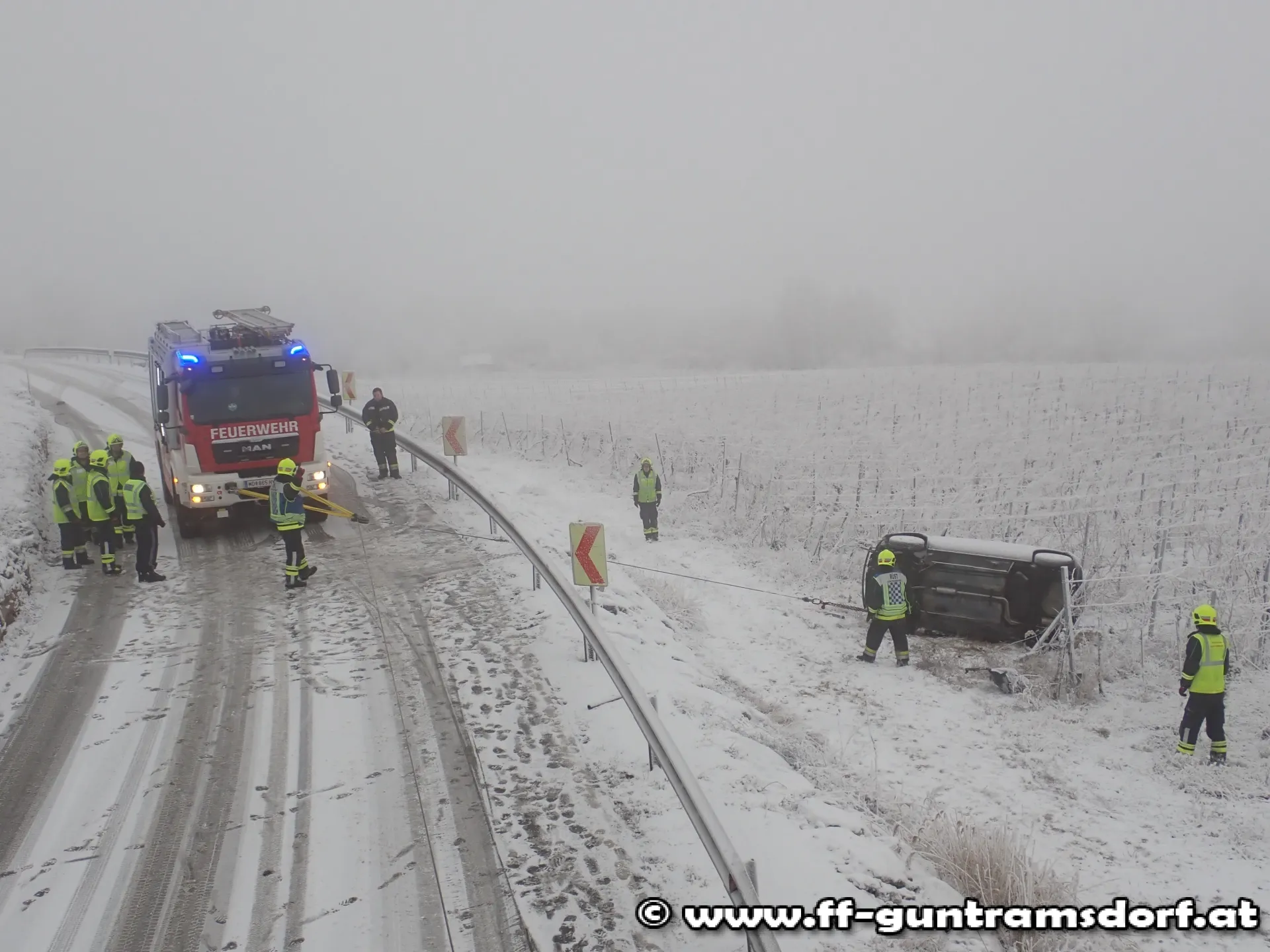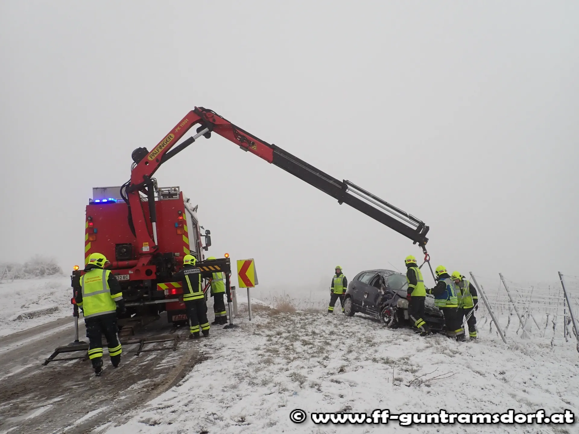 Um 08:19 Uhr wurde die FF Guntramsdorf zu einer Fahrzeugbergung auf die L151 (Weinbergstrasse) alarmiert. Am Weg zum Einsatz wurden die Fahrbahnverhältnisse von Meter zu Meter winterlicher und am Einsatzort herrschte schlussendlich Schneefahrbahn.