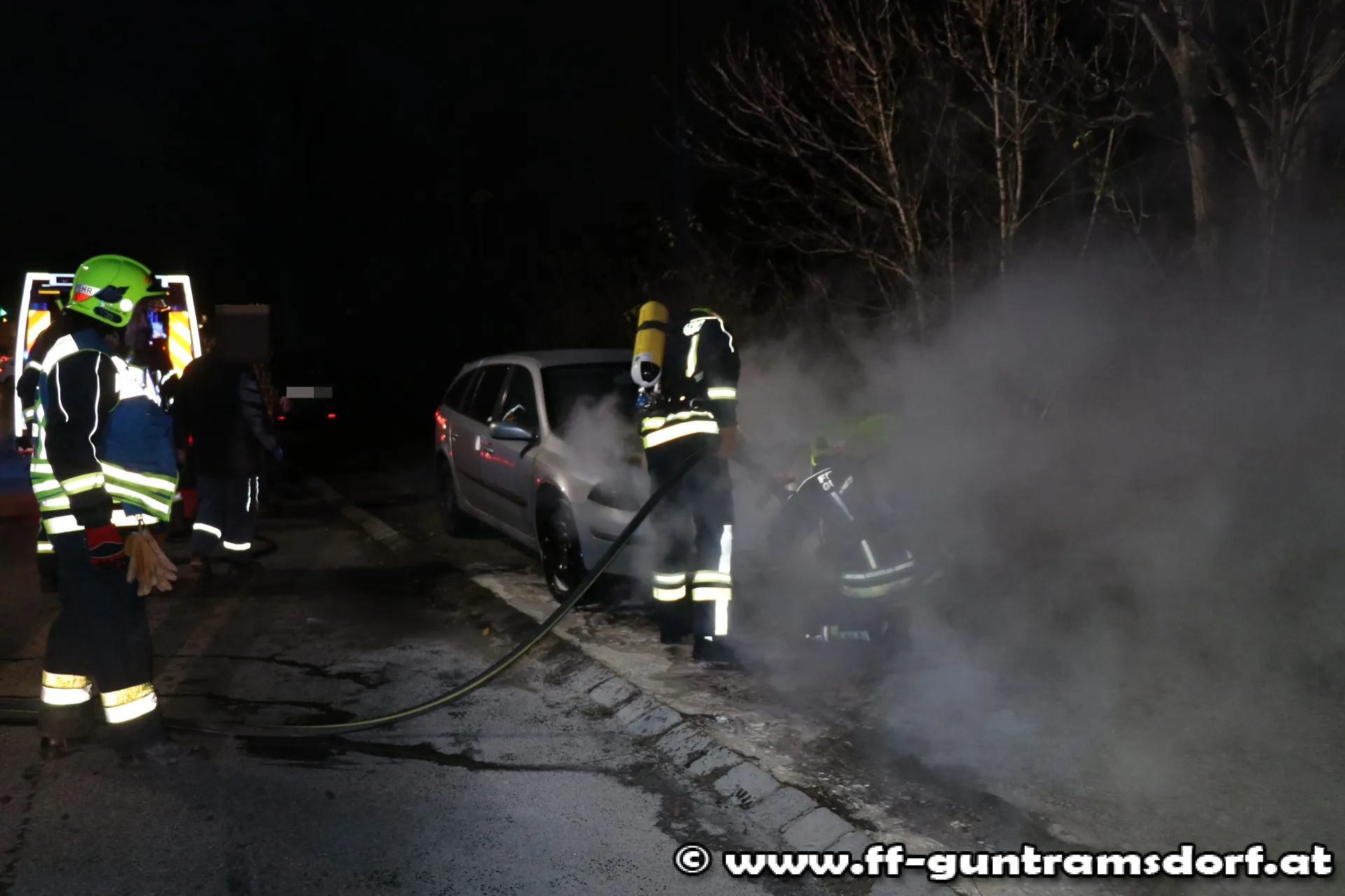 Am 2. Dezember wurde die Feuerwehr Guntramsdorf um 16:39 Uhr zu einem Fahrzeugbrand in die Mödlingerstraße alarmiert. Da bei der Alarmstufe B2 die Betriebsfeuerwehr Axalta mitalarmiert wird und der Einsatzort direkt vor der Einfahrt zum Betriebsgelände war, war diese umgehend mit einem Fahrzeug vor Ort und begann mit den Löschmaßnahmen.
