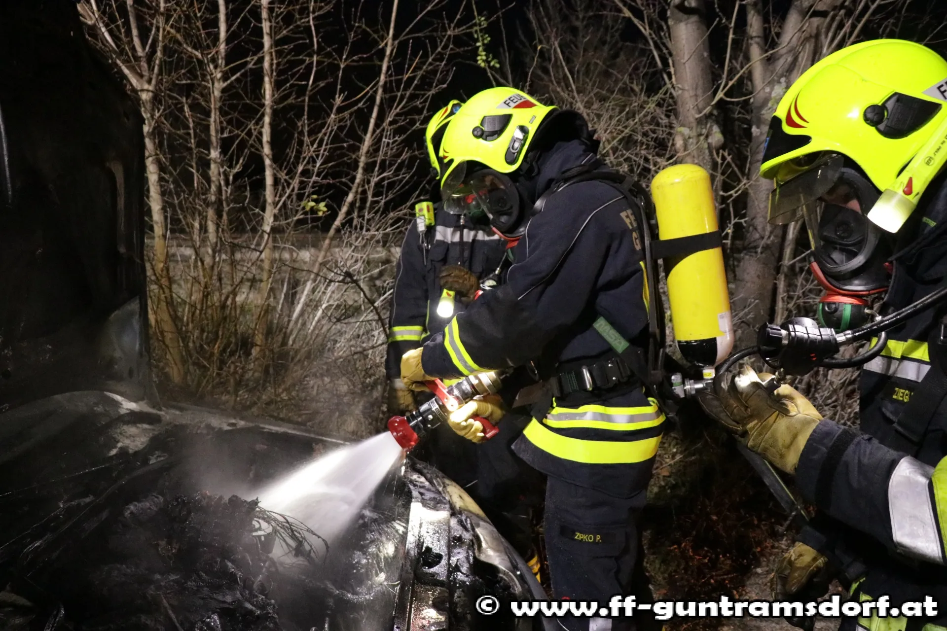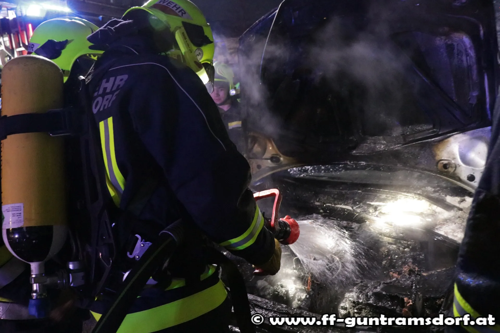 Als die Feuerwehr Guntramsdorf am Einsatzort eintraf, übernahm der Atemschutztrupp von Tank 2 Guntramsdorf das Strahlrohr. Durch das rasche Einschreiten der Betriebsfeuerwehr beschränkte sich der Brand auf den Motorraum. Durch die Zugabe von Schaummittel wurden auch die letzten Glutnester abgelöscht.