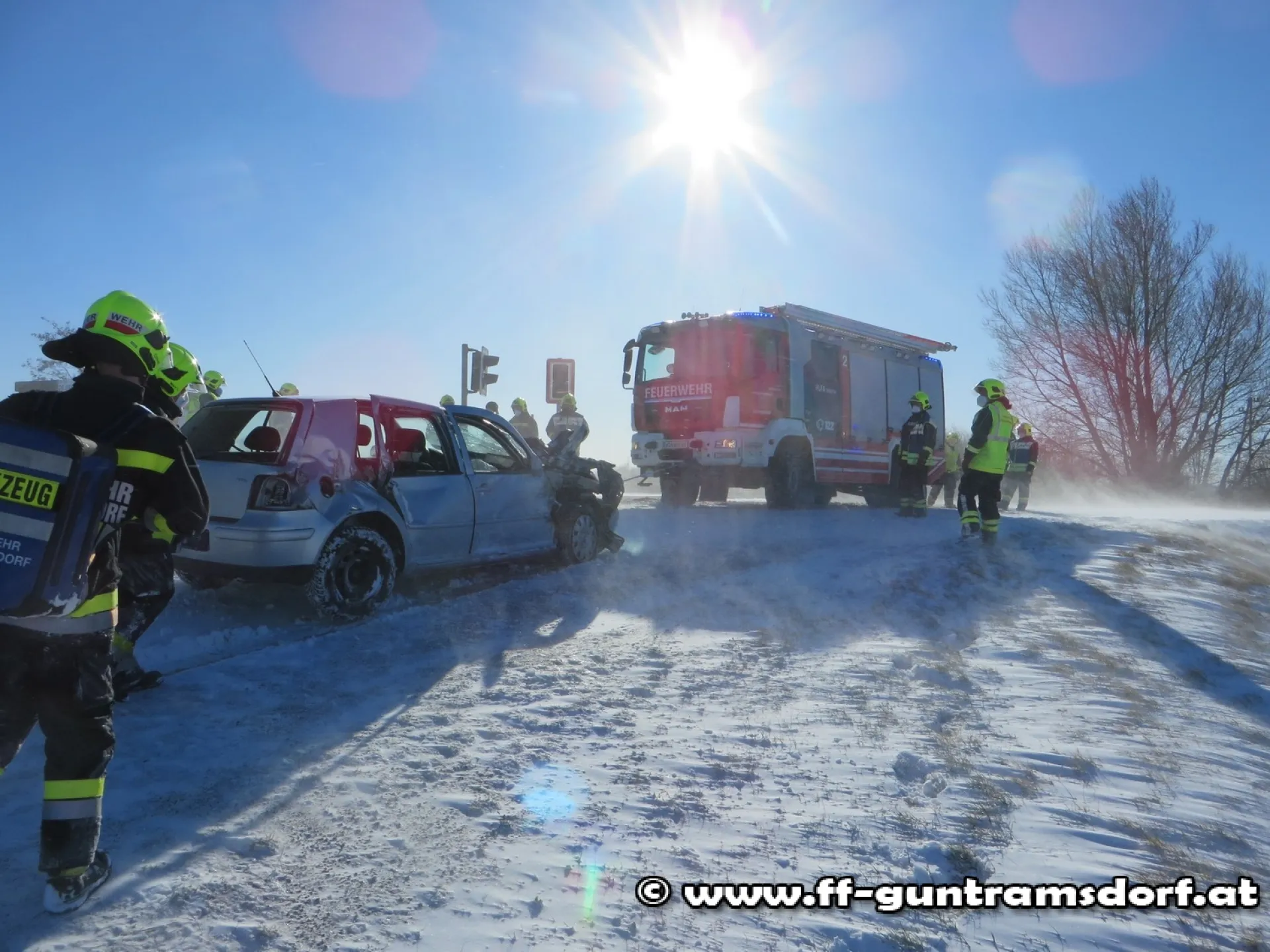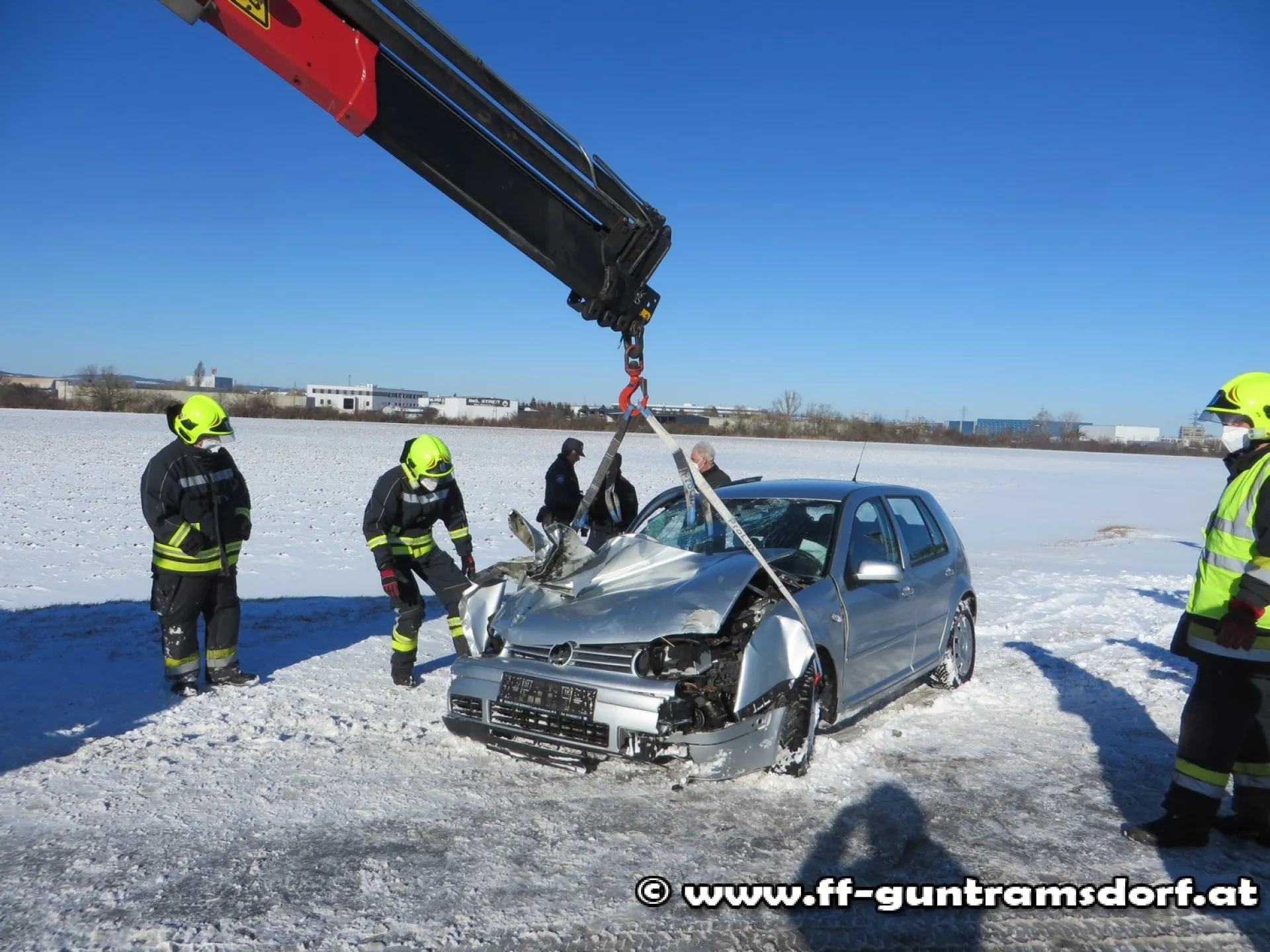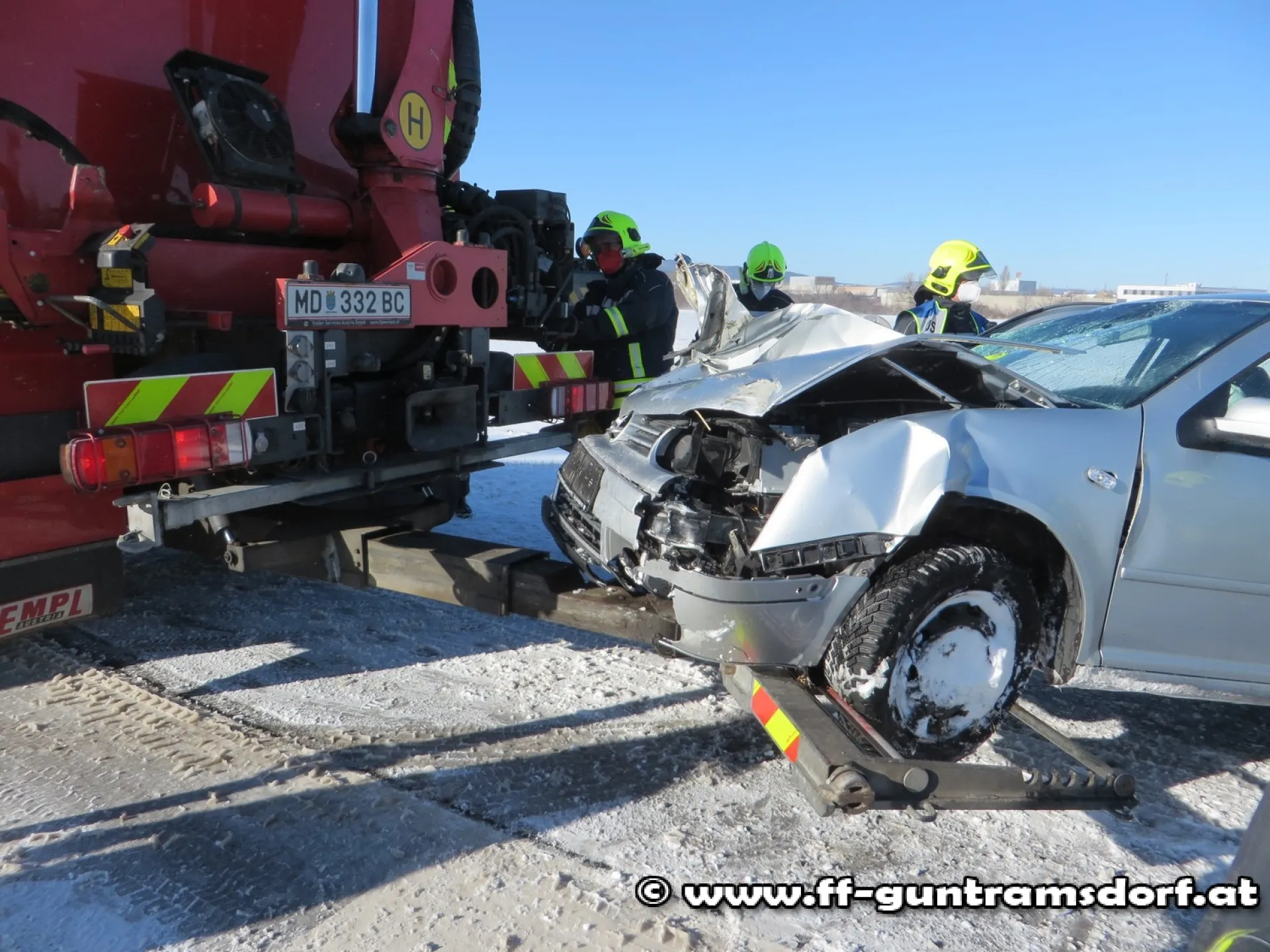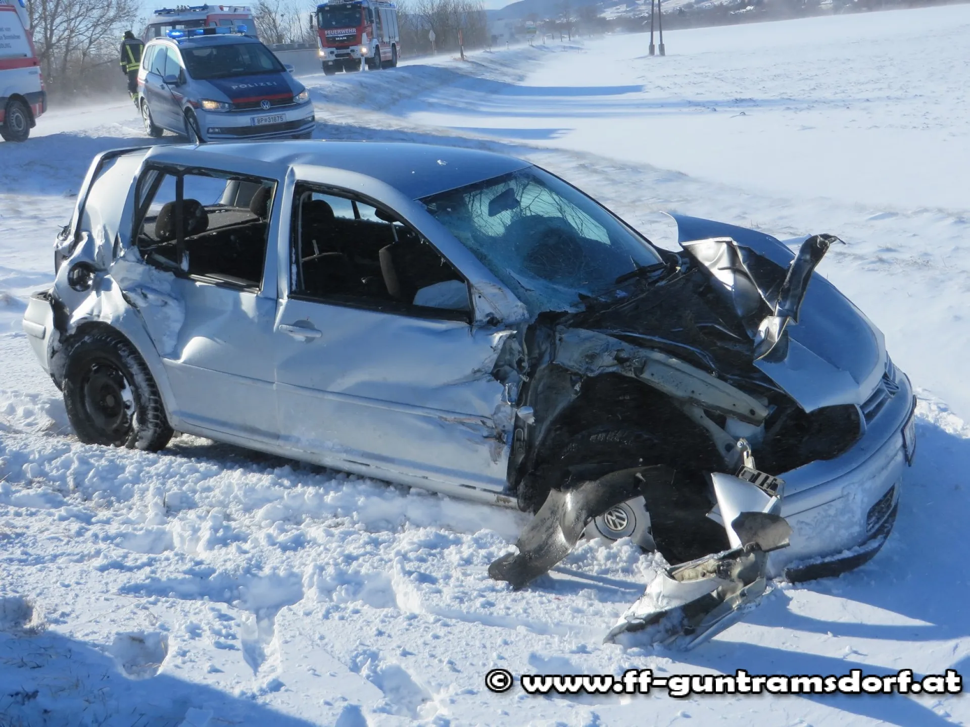 Die FF Guntramsdorf wurde um 12.20 Uhr mittels Pager, SMS und Sirene zu diesem Unfall alarmiert, weil man zunächst eine eingeklemmte Person im Auto vermutete. Dies stellte sich beim Eintreffen des ersten Einsatzfahrzeuges glücklicherweise als Irrtum heraus; die Frau wurde bereits im Rettungswagen betreut.