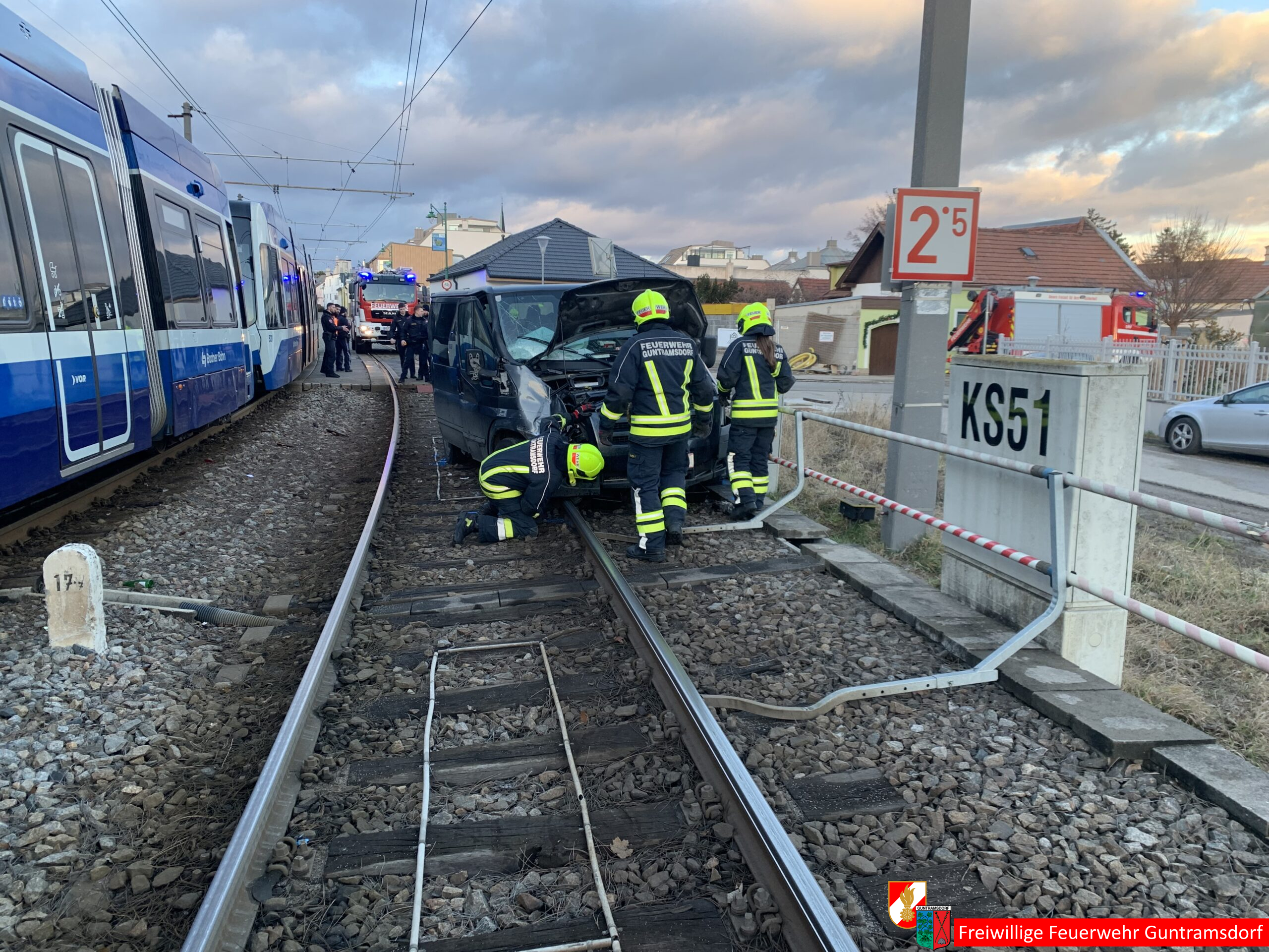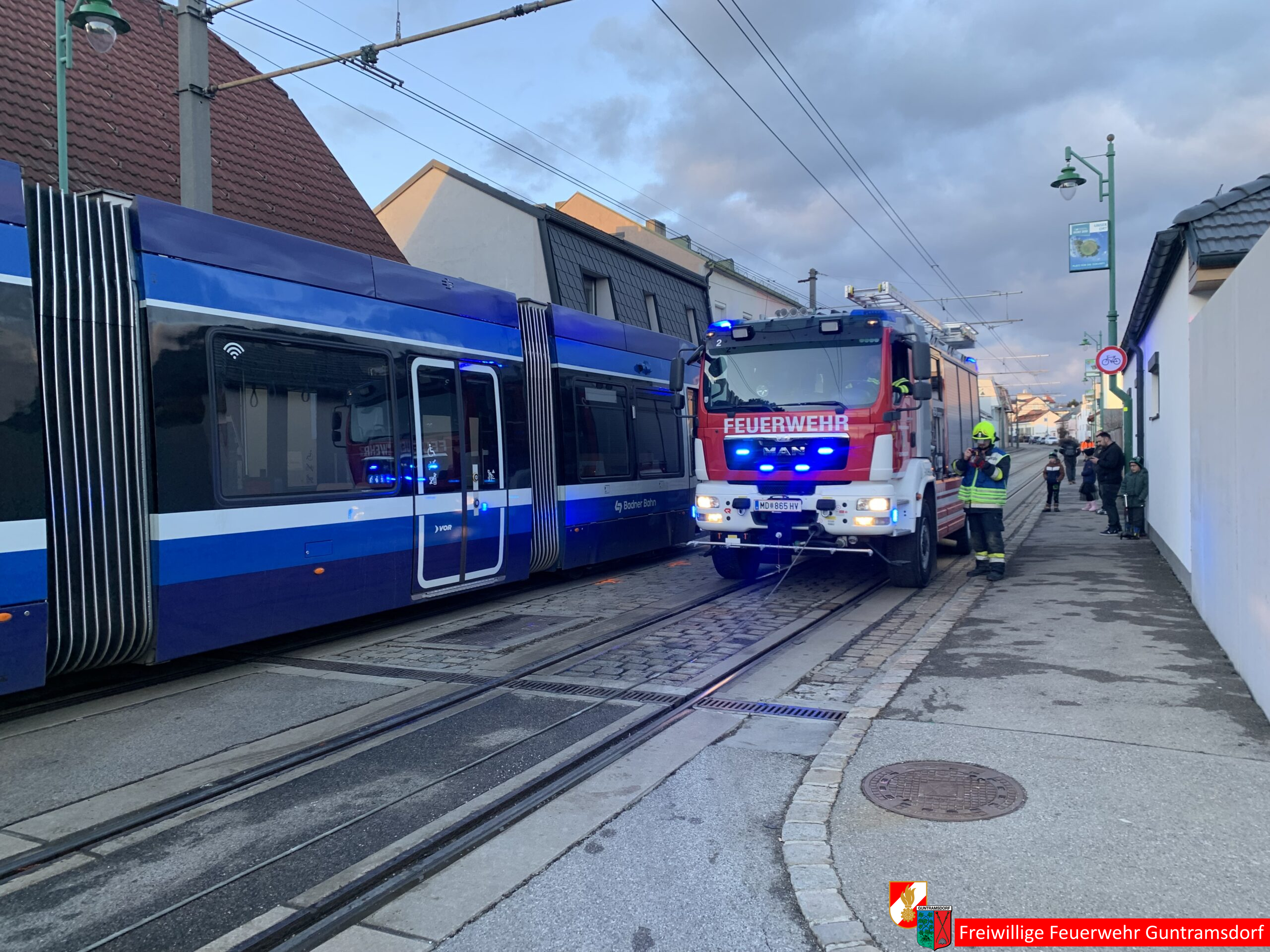 Am Nachmittag wurde die Feuerwehr zu einem Verkehrsunfall in der Steinfeldgasse alarmiert. Auf der Kreuzung mit der Badner Bahn war ein PKW mit einer Garnitur der Badner Bahn kollidiert. Infolge des heftigen Zusammenstoßes entgleiste die Zugsgarnitur, am beteiligten PKW entstand Totalschaden. Glücklicherweise wurden bei diesem Unfall keine Personen verletzt.
