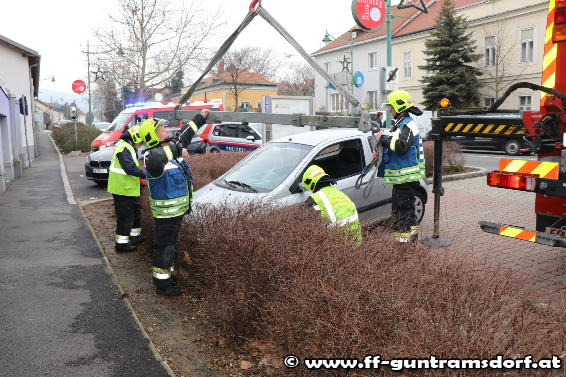Kurz vor 14 Uhr wurde die FF Guntramsdorf mit der Meldung „PKW im Graben“ zu einer PKW-Bergung in der Hauptstraße alarmiert.