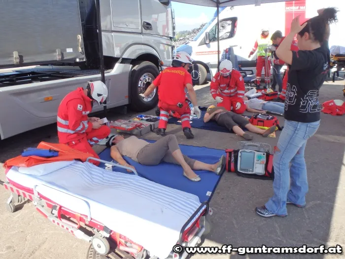 In den Fahrzeugen waren teils Übungspuppen und teils menschliche Darsteller, welche vom Realistik-Team des Roten Kreuzes bestens geschminkt und aufbereitet wurden, eingeklemmt.