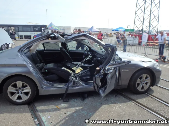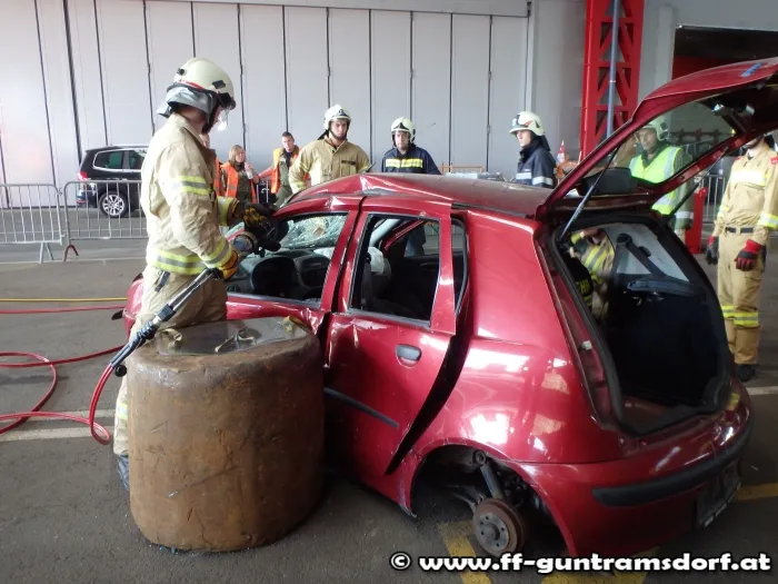 Die Teilnehmer konnten so sehen wie stabil moderne Fahrzeuge aufgebaut sind und wie schwer es sein kann, sich durch den stabilen mehrschichtigen Aufbau zu kämpfen.