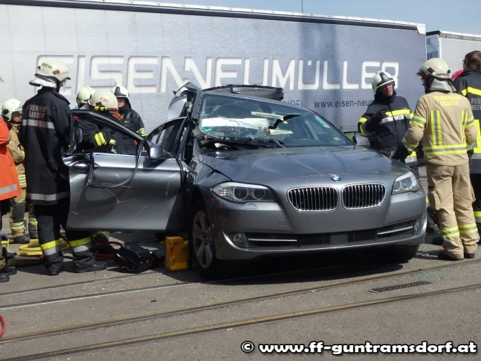 Beim zweiten Teil der Station wurde ein Verkehrsunfall mit einer eingeklemmten Person in einem Luxusklassefahrzeug angenommen.