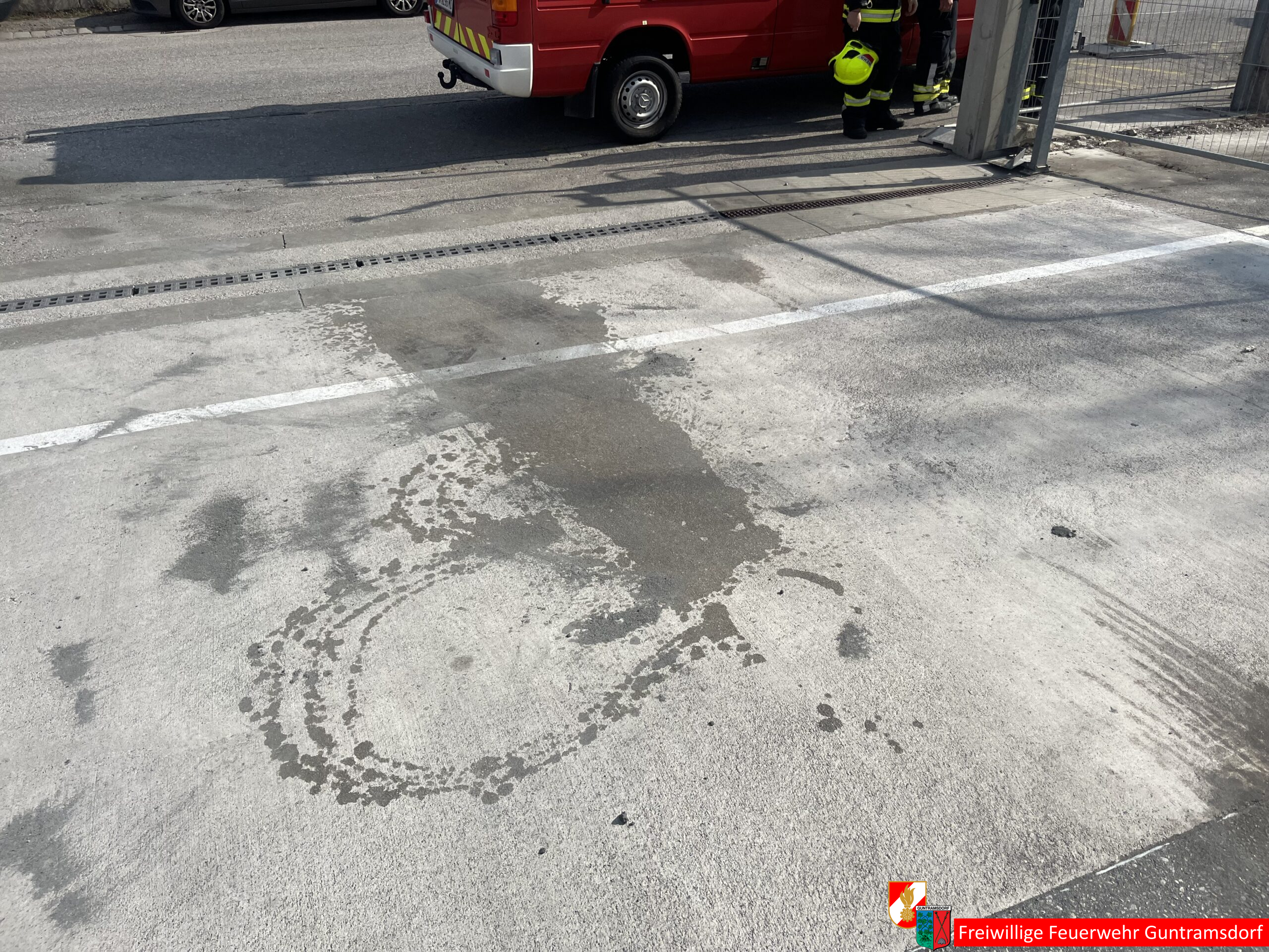 Bei einem LKW trat der Stoff Phenol aus und bildete eine kleine Pfütze. Der LKW war gerade dabei, seine Ladung an eine nahegelegene Firma zu liefern. Es handelte sich um eine geringe Menge, die an mehreren Stellen austrat.