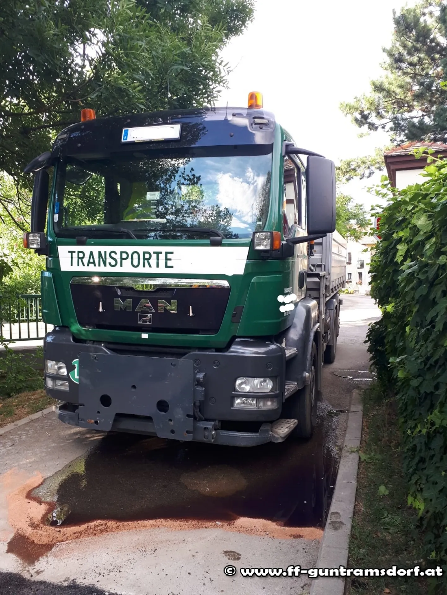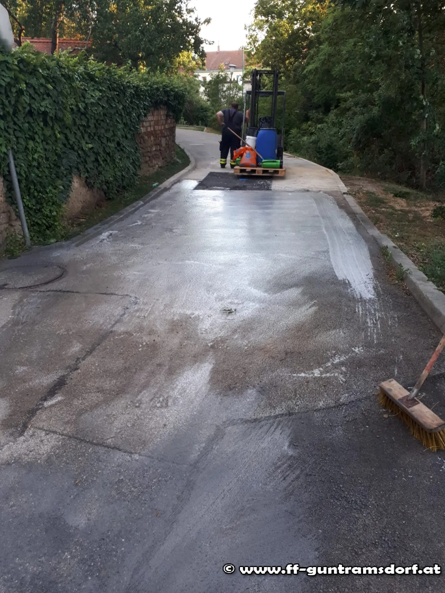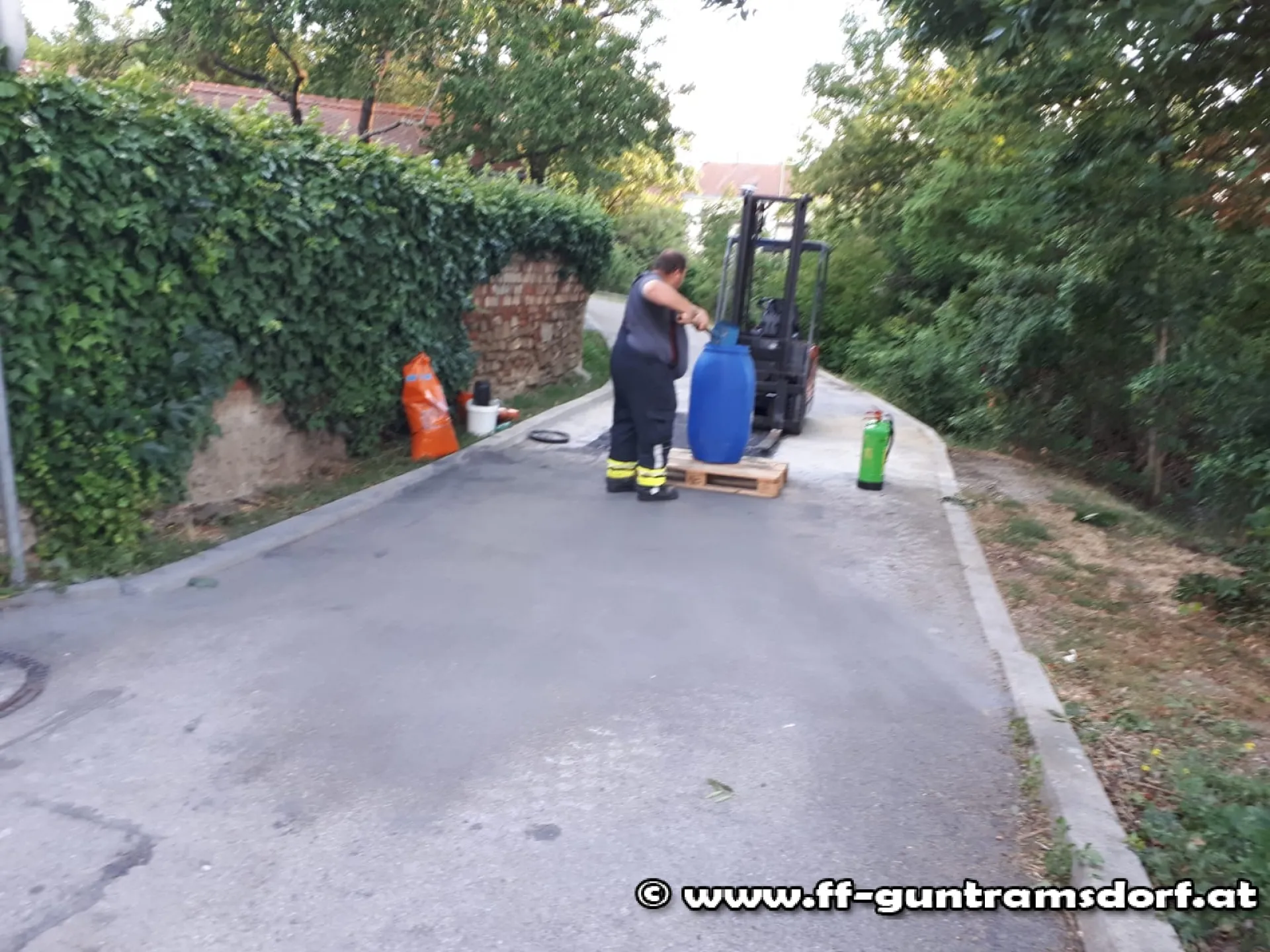 Auf dem Verbindungsweg zwischen dem Feuerwehrhaus und der Laxenburgerstraße (Am Tabor) war bei einem LKW ein Hydraulikschlauch geplatzt. Da wegen einer gerade stattfindenden Übung mehrere Feuerwehrmitglieder im Feuerwehrhaus anwesend waren, wurde der „Einsatzort“ zu Fuß bzw. mit dem Hubstapler erreicht.